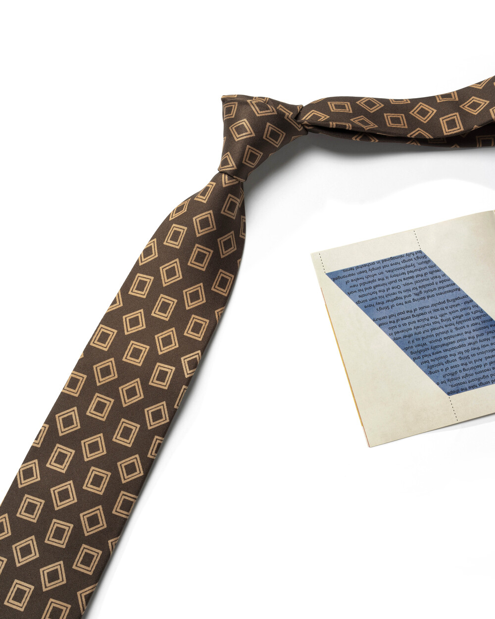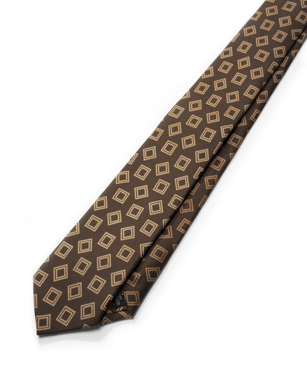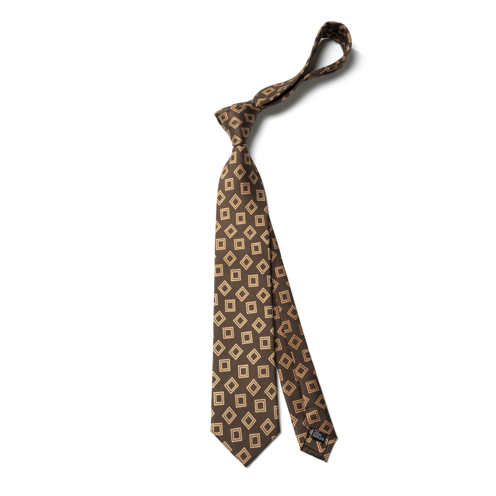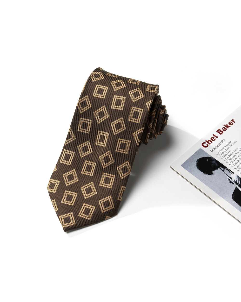 클린한 터칭감과 모던한 실루엣으로 사계절 시즌 착용하기에 적절한 프리미엄 100% SILK 타이입니다. 클래식한 우드 브라운 컬러와 스퀘어 프레임 패턴으로 구조적인 형태감이 가진 멋을 보여줍니다. 실크 원사가 밀도 높은 트윌 직조로 짜여져 섬세하고 유연하며 스크래치에 강한 텍스쳐 입니다.