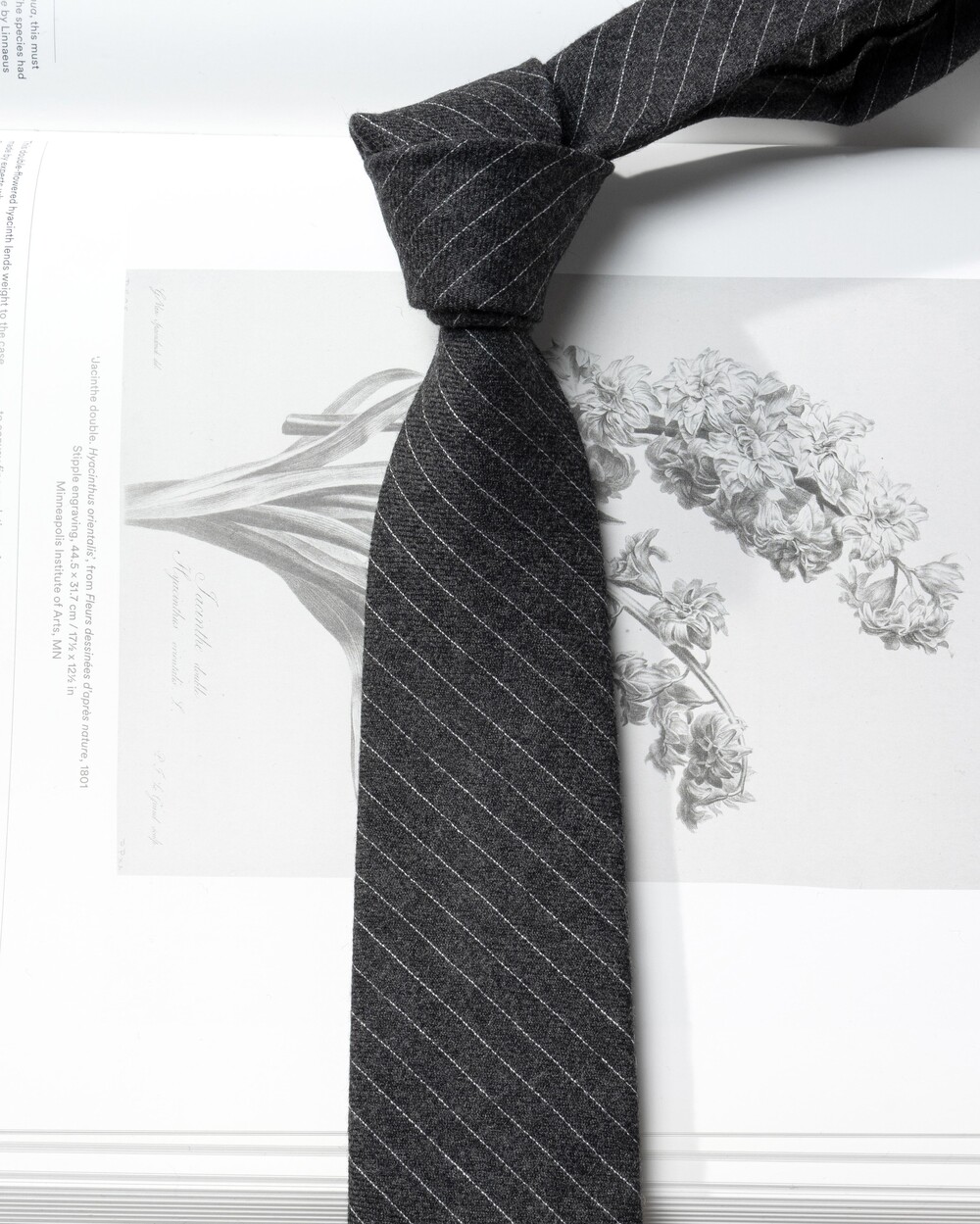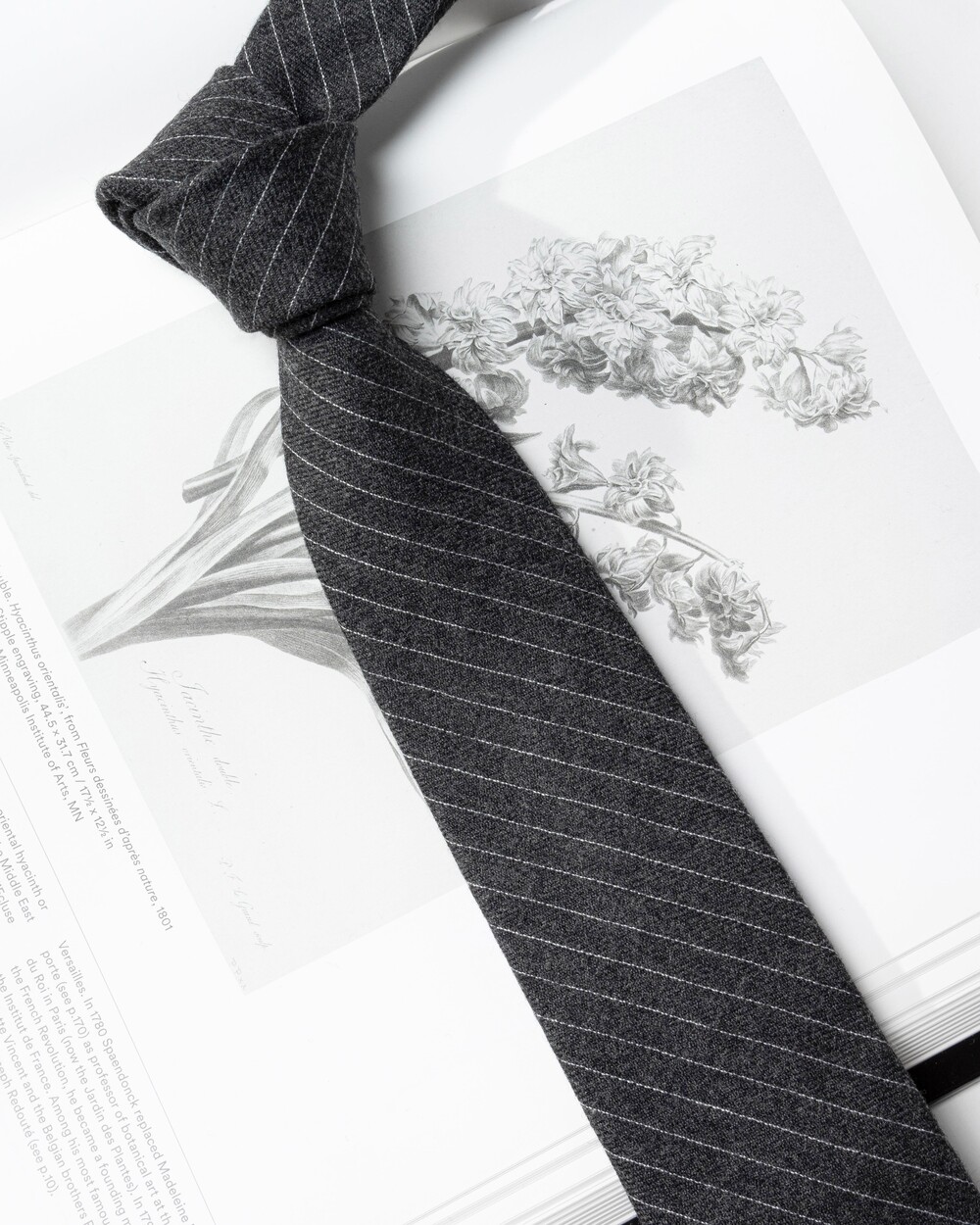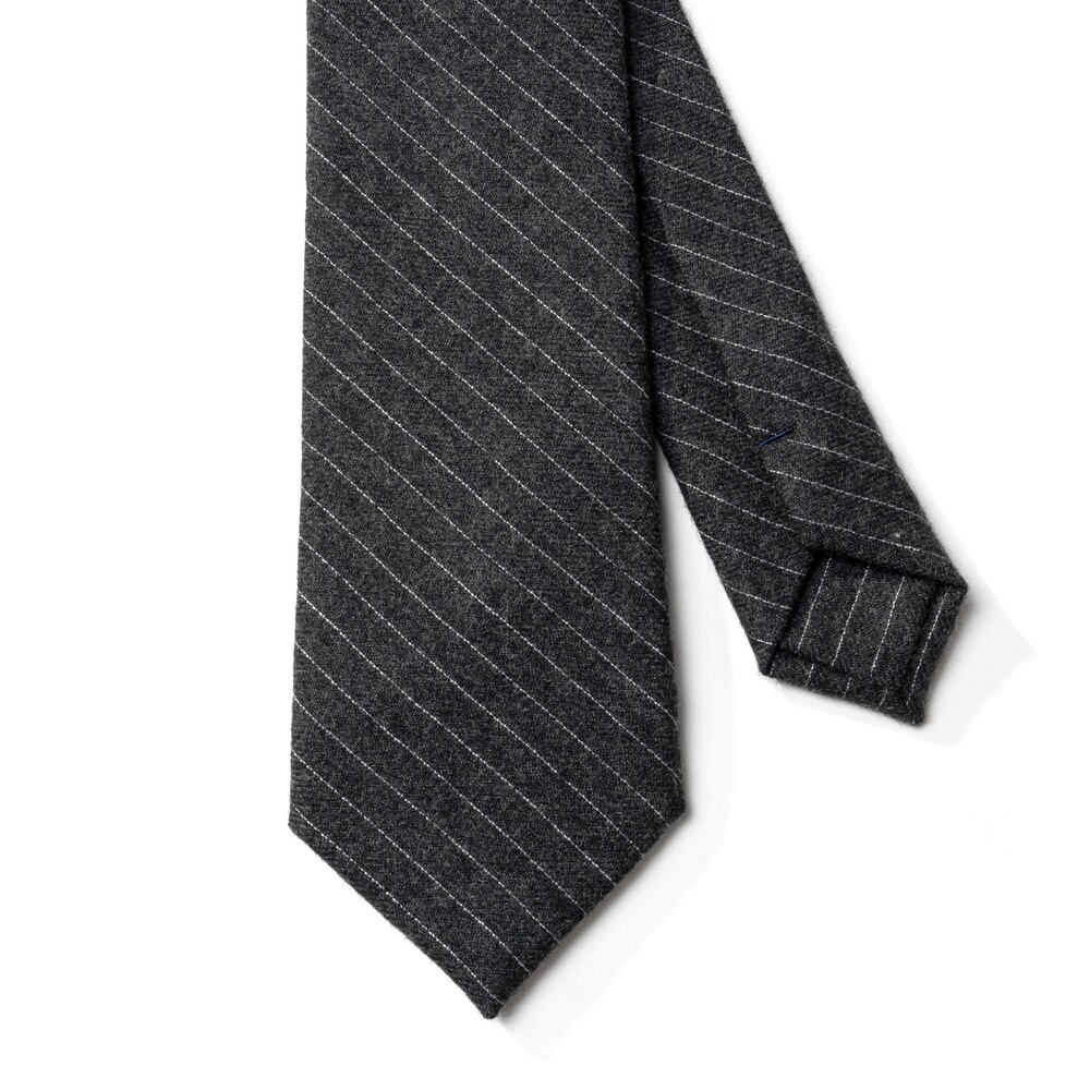 세밀한 핀 도트 스트라이프 패턴의 이탈리안 울 타이입니다. 애쉬빛이 감도는 차콜 블랙 베이스 컬러로 어떤 아웃핏에 착용하여도 멋스럽고 클래식한 룩을 연출 가능합니다. 부드럽고 헤어리한 질감의 직조 짜임으로 다양한 시즌 범용성 높게 착용됩니다.