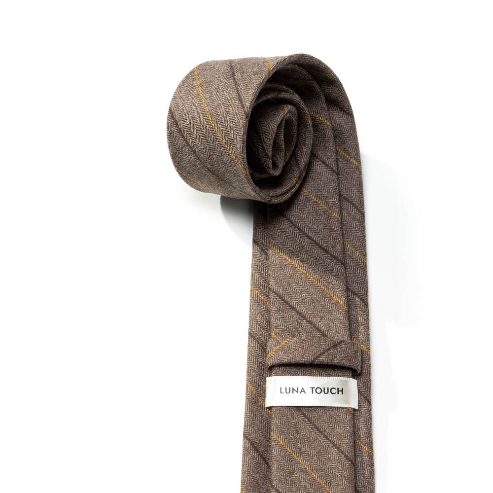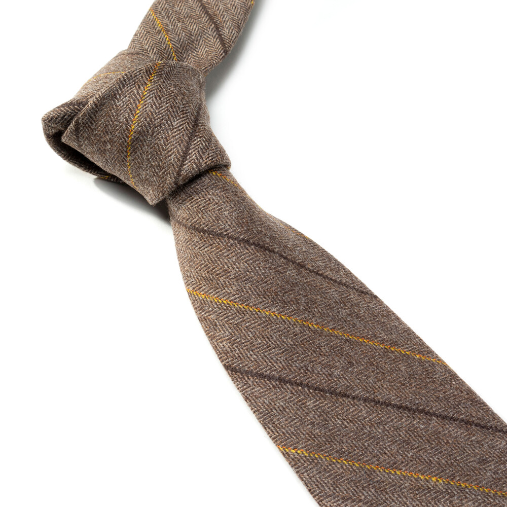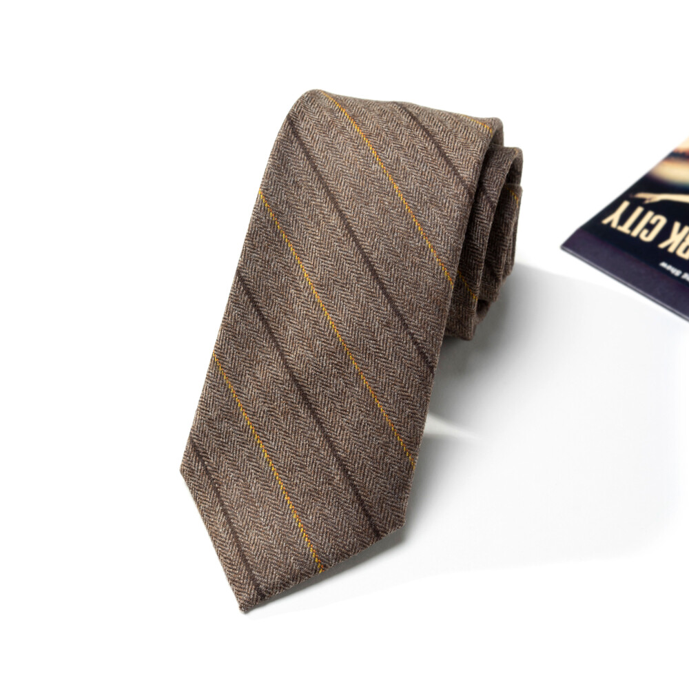 따뜻하고 온화한 색감을 가진 프리미엄 이탈리아 캐시미어 울 블렌디드 소재의 스트라이프 타이입니다. 와이드 스트라이프 패턴과 섬세하게 직조된 헤링본 캐시미어 울 원사로 제작되어 견고한 짜임새와 밀도 높은 질감을 느끼실 수 있습니다. 채도감을 덜어낸 부드럽고 마일드한 뮤티드 베이지 브라운 색감으로 f/w 시즌 착용하기에 멋스러우며 클래식한 분위기를 베이스로 코지한 분위기까지 연출 가능합니다.