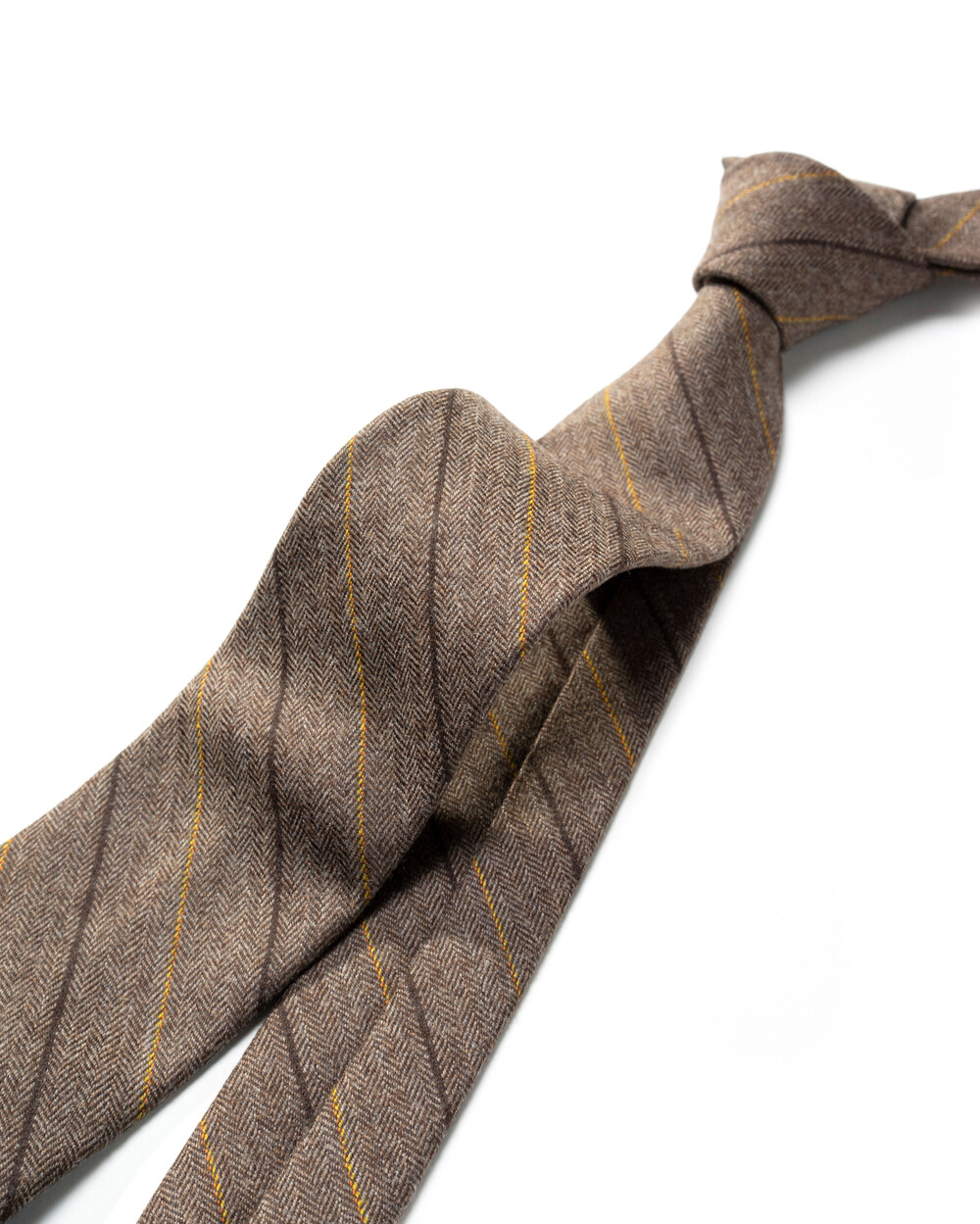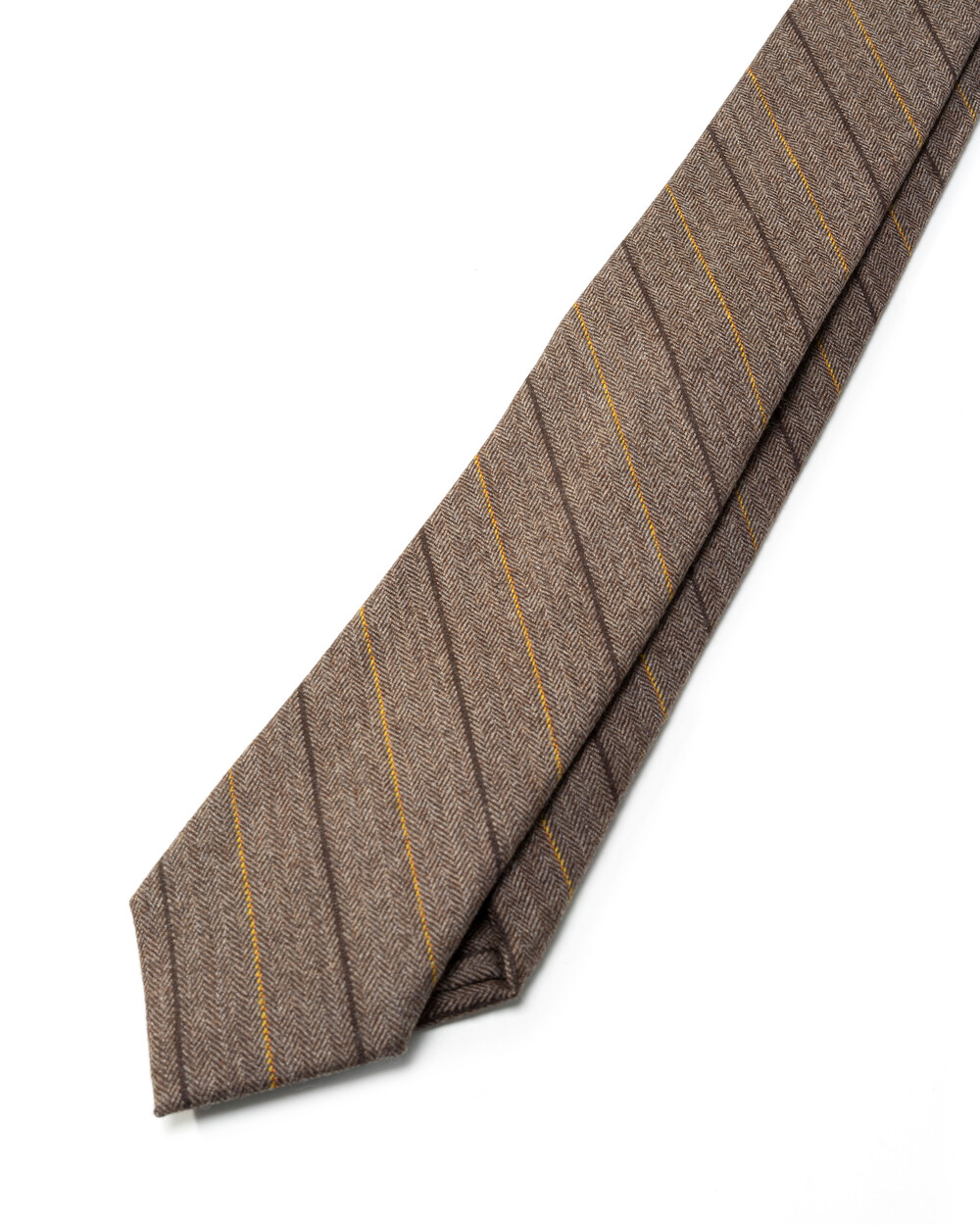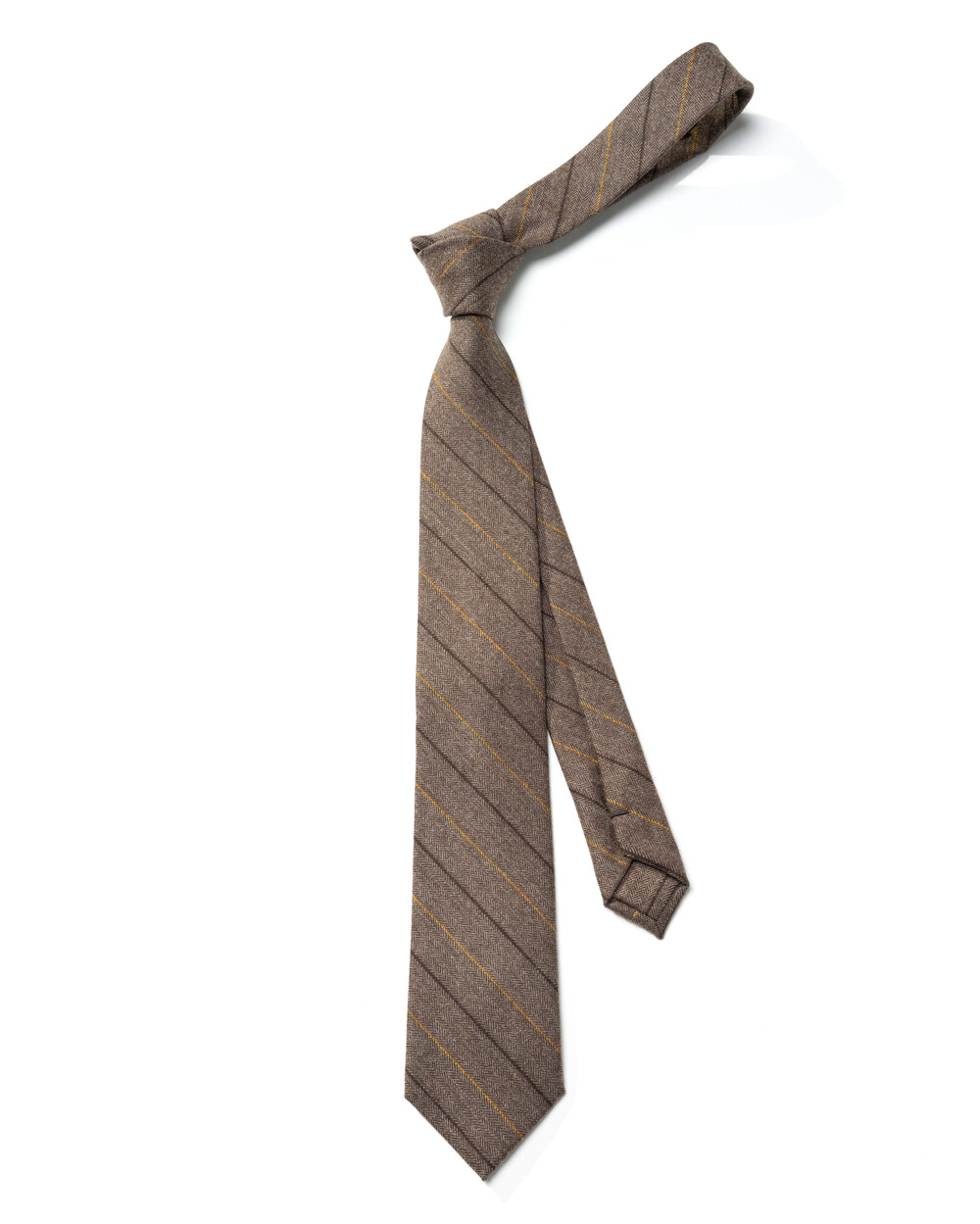 따뜻하고 온화한 색감을 가진 프리미엄 이탈리아 캐시미어 울 블렌디드 소재의 스트라이프 타이입니다. 와이드 스트라이프 패턴과 섬세하게 직조된 헤링본 캐시미어 울 원사로 제작되어 견고한 짜임새와 밀도 높은 질감을 느끼실 수 있습니다. 채도감을 덜어낸 부드럽고 마일드한 뮤티드 베이지 브라운 색감으로 f/w 시즌 착용하기에 멋스러우며 클래식한 분위기를 베이스로 코지한 분위기까지 연출 가능합니다.