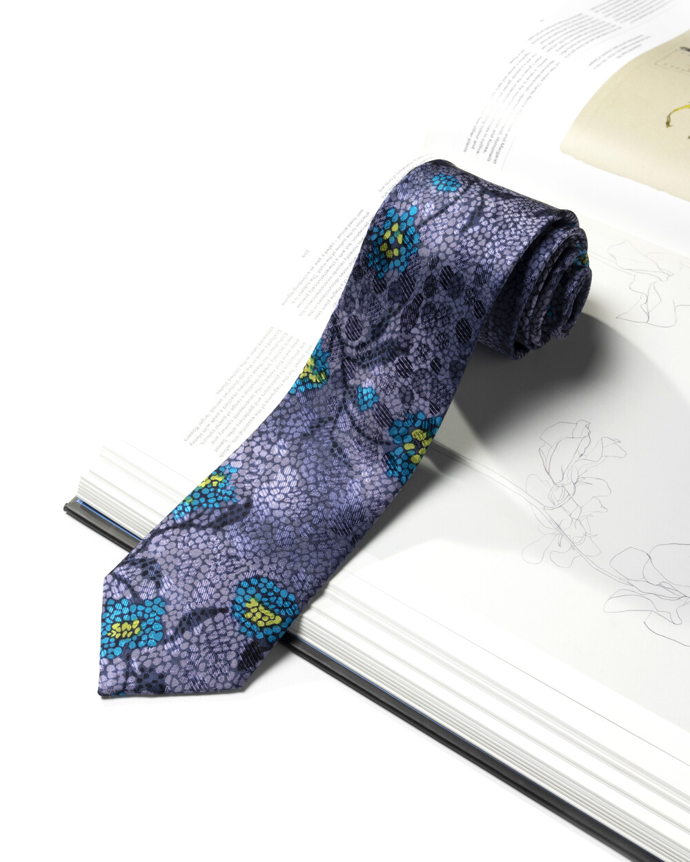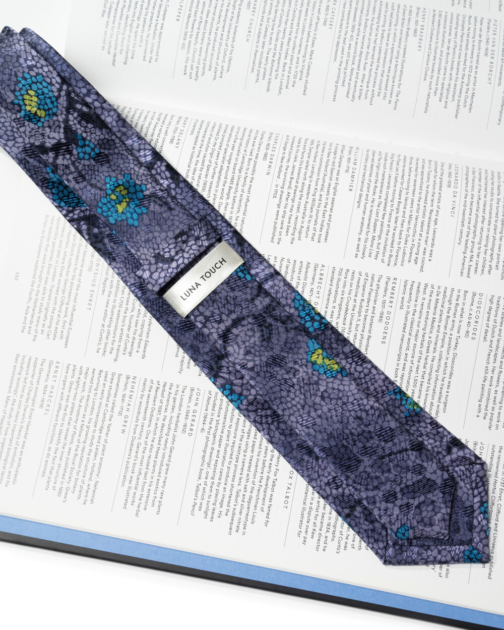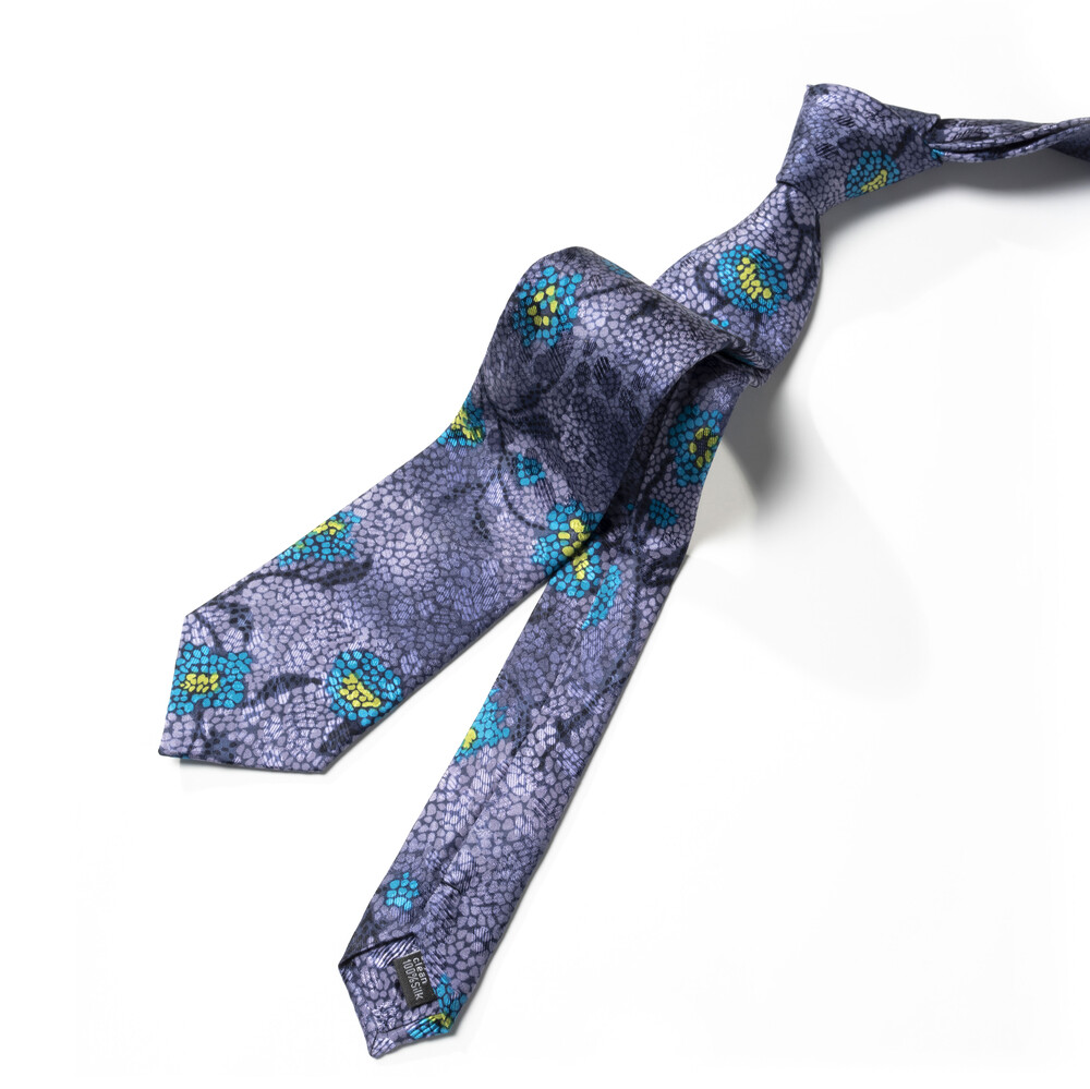 블루지한 딥 퍼플 컬러와 섬세한 패턴 베리에이션의 프리미엄 실크 타이입니다. 매끄러운 텍스쳐의 100% SILK 원사로 빛의 각도에 따라서 은빛이 감도는 불투명하고도 특별한 질감과 색감을 선사합니다. 타이 한 가지만으로도 사계절 다채로운 룩에 적용 가능한 세련된 실루엣이 연출됩니다.