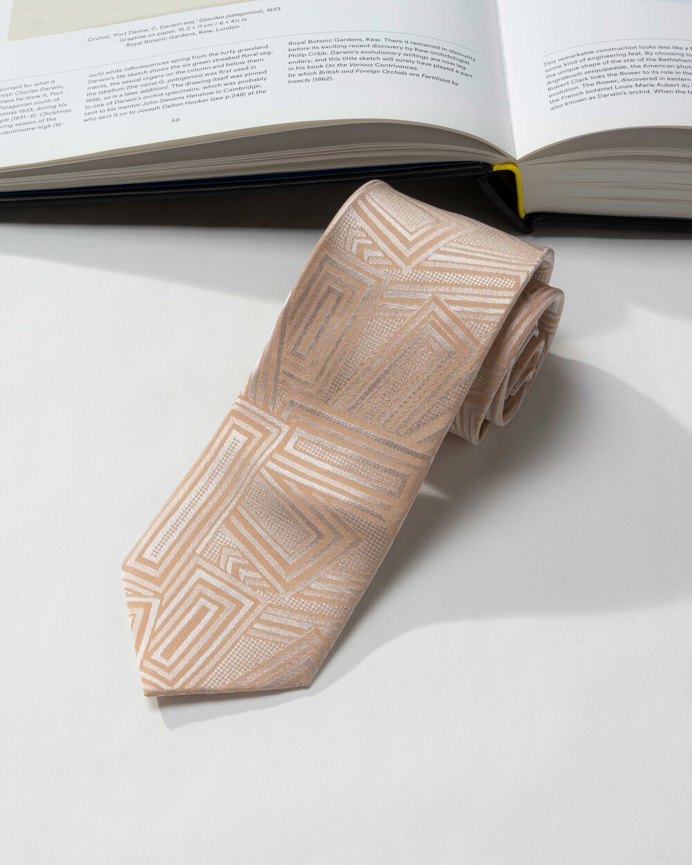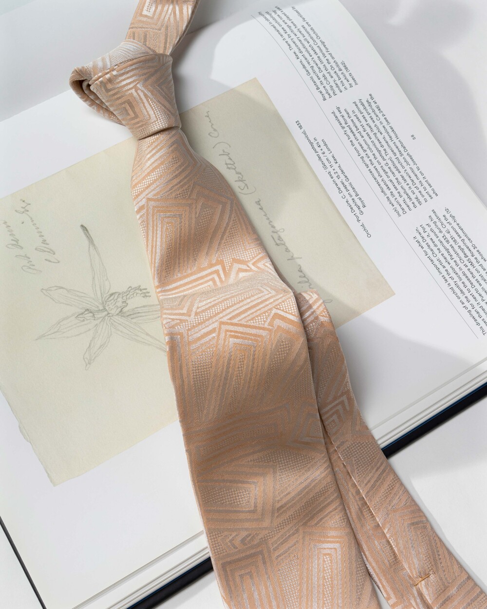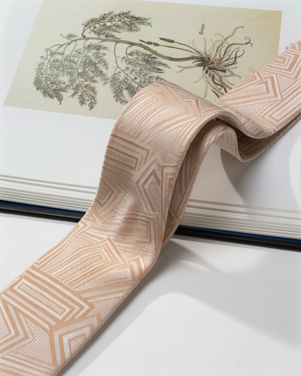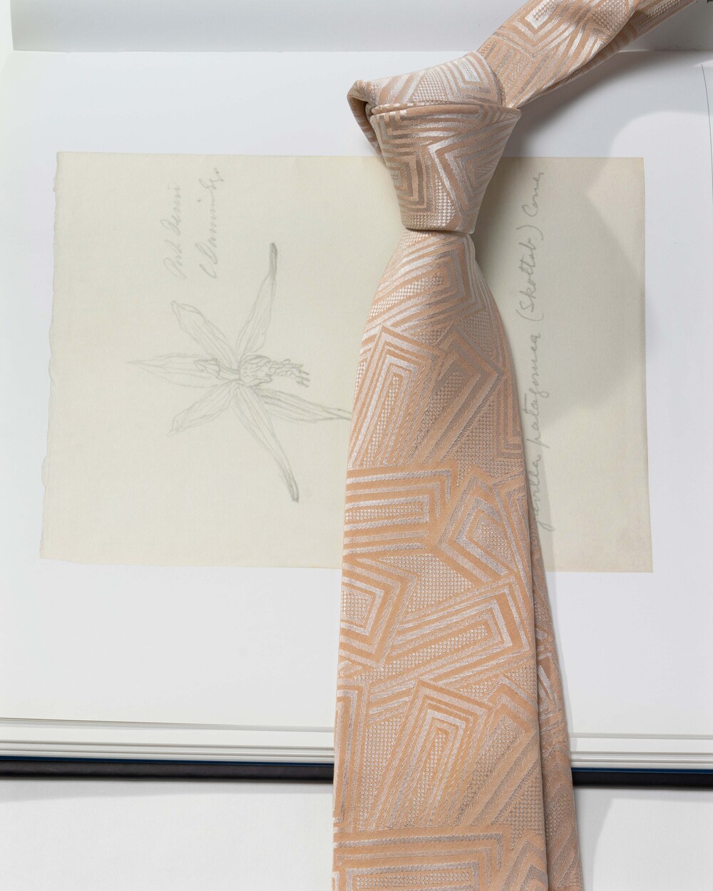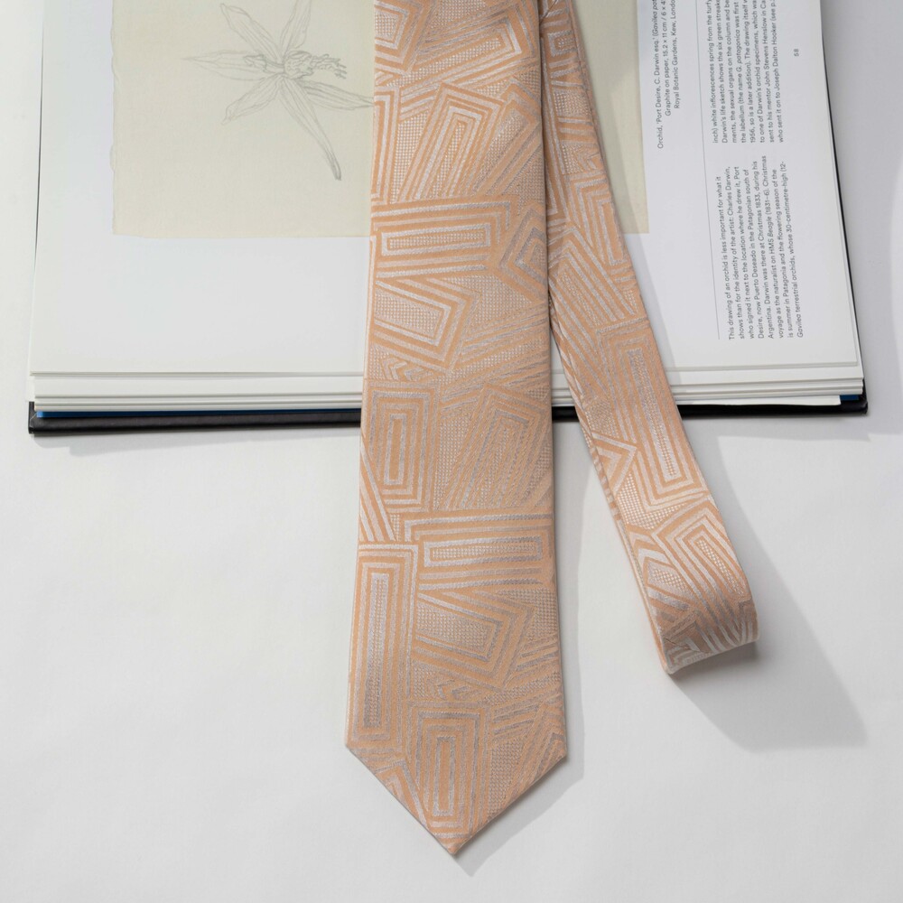 은은하고 쉬머한 질감이 멋스러운 샴페인 크림 컬러의 실크 타이입니다. 직사각형 형태의 스퀘어 패턴이 각도에 따라 다양한 텍스쳐로 빛을 내며 조형성의 아름다움을 느끼실 수 있습니다. 웨딩 타이로 함께 추천 드립니다.