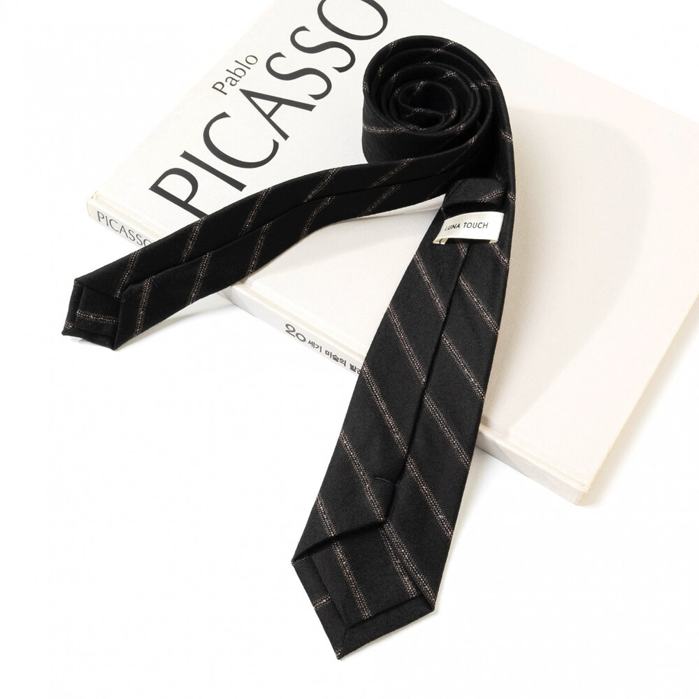 클래시한 모노블랙 컬러의 스트라이프 패턴 Italy Cashmere 100% 소재의 프리미엄 타이입니다. 핀 Pin 디테일의 자수 직조로 짜여진 스트라이프 패턴이 와이드한 간격으로 배치되어 더욱 직관적이고 정돈된 분위기로 착용됩니다. 포다채로운 아웃핏으로 언제 어디서나 매치가 가능한 머스트 해브 디자인으로 깔끔하고 세련된 분위기를 완성합니다.