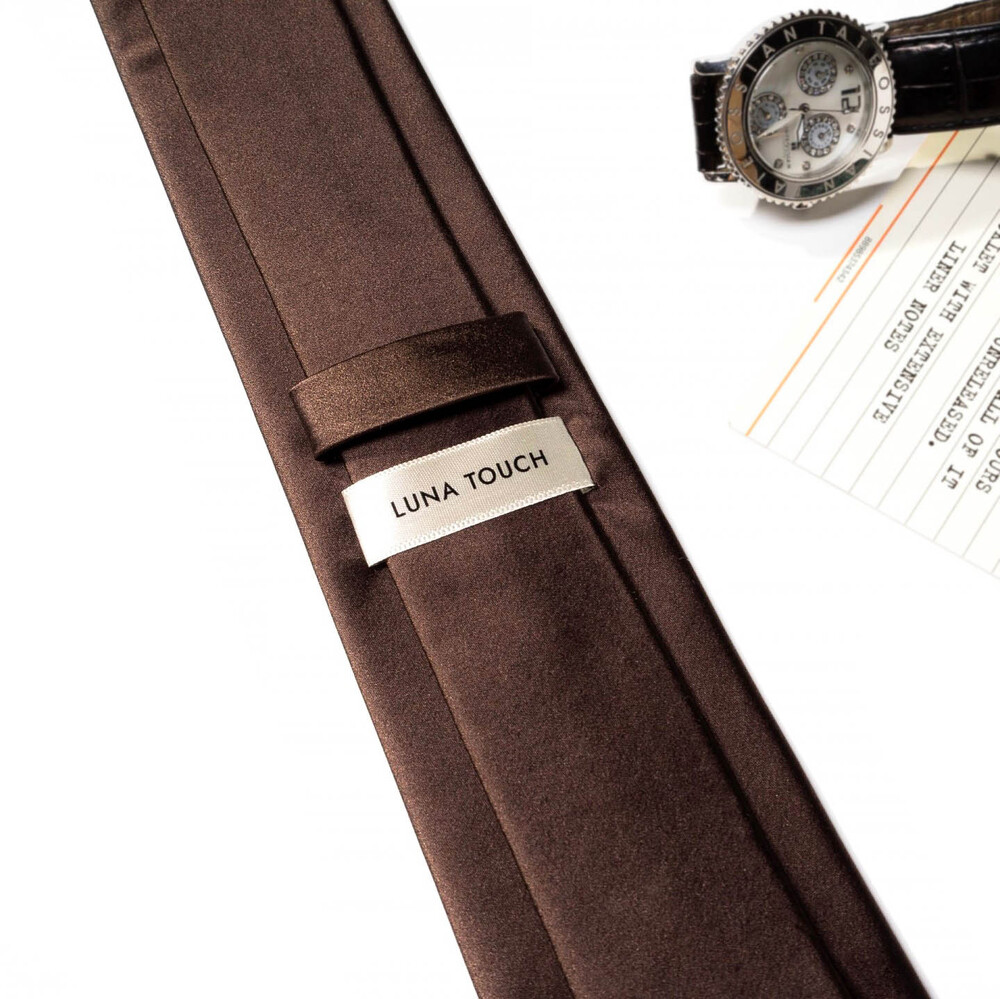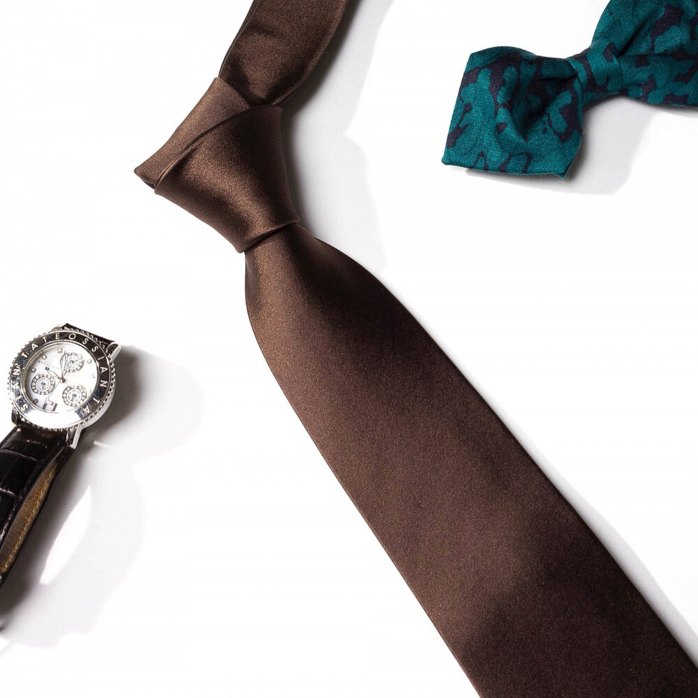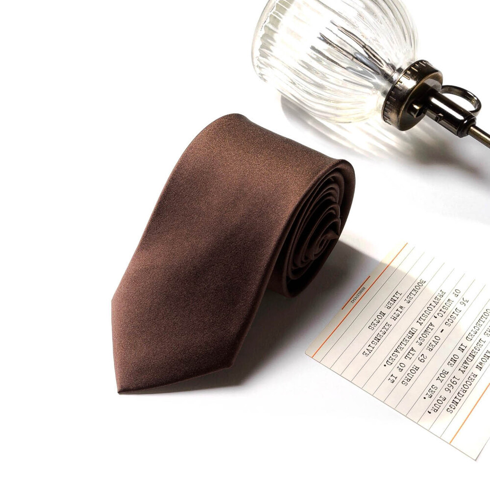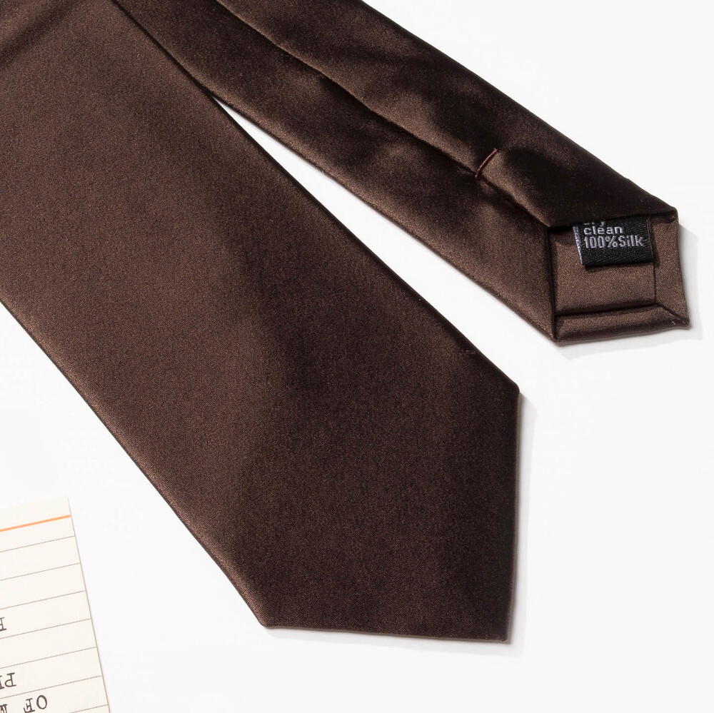 SOLID DEEP WOOD BROWN SILK TIE
