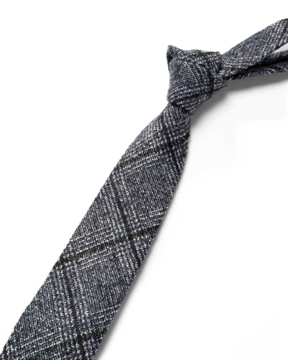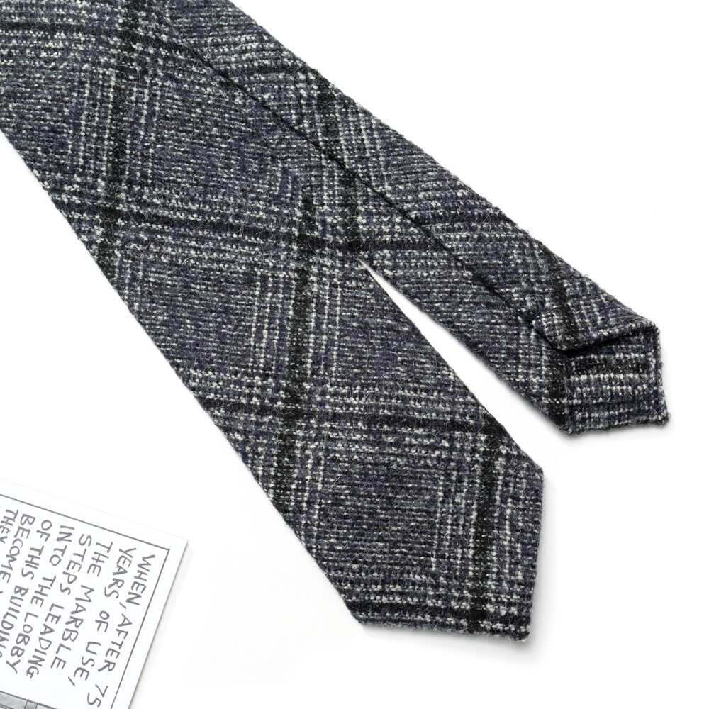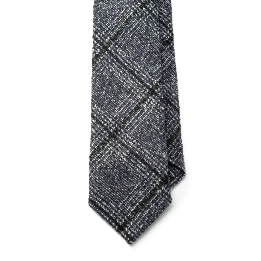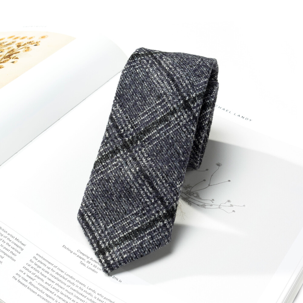 로열 네이비 베이스에 딥 퍼플 컬러의 캐시미어 원사가 은은하게 감도는 모던 체크 패턴의 잉글랜드 캐시미어 England Cashmere 100% 프리미엄 타이입니다. 클래식한 텍스쳐의 직조로 짜여진 화이트, 블랙의 글레너체크 베리에이션으로 매력적인 요소의 디테일이 돋보입니다. 견고하고 짜임새 있는 터칭감으로 겨울부터 봄, 가을 시즌을 포함하여 다채로운 착장에 유연하게 착용됩니다.