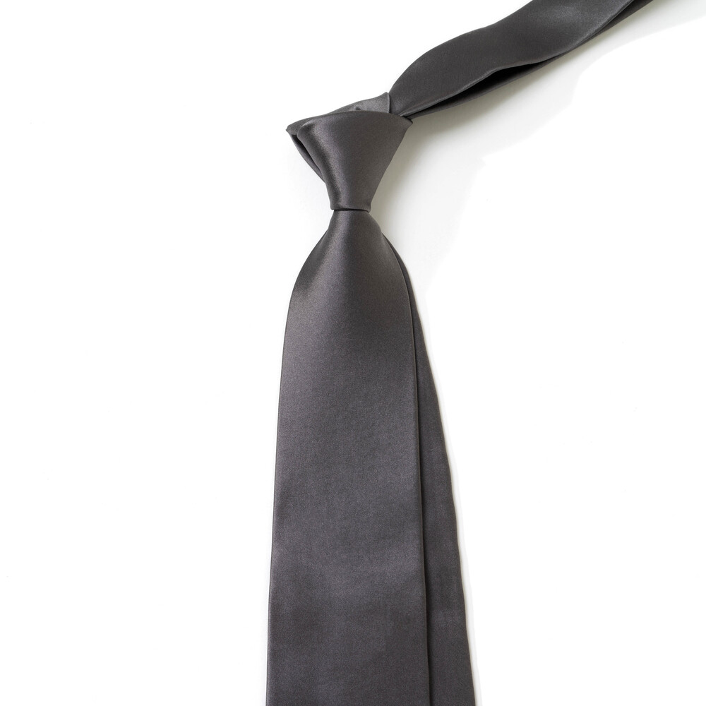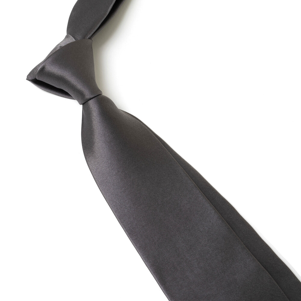 클래식 모노 그레이 컬러의 솔리드 프리미엄 실크 타이입니다. 마일드한 터칭감의 적당한 명도를 가진 딥 그레이가 포멀한 무드로 착용됩니다. 섬세하고 부드러운 실크 직조의 100% Pure Silk 소재로 제작되어 유연함을 지닌 텍스쳐로 자연스럽고