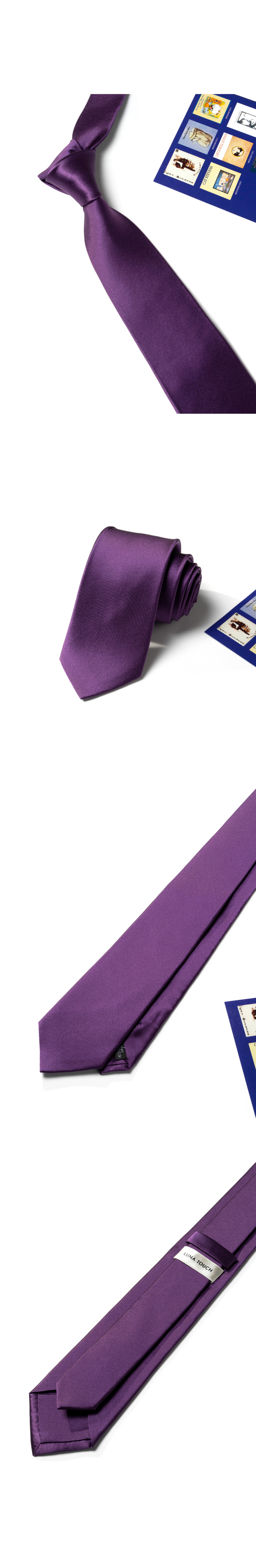 루나터치의 시그니처 솔리드 실크 타이입니다. 로열 퍼플 ROYAL PURPLE 컬러로 한층 더 그윽함이 담긴 멋스러운 색감을 선보입니다. 부드러운 텍스쳐를 가진 PURE SILK 100% 소재와 짙은 제비꽃 빛깔의 로열 퍼플은 사계절 시즌 착장에 따라 다양하게 매치하기 적절합니다. 타이 하나만 착용하여도 은은하게 빛나는 광택감과 클래식한 분위기가 연출됩니다.