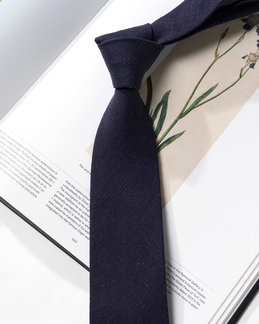 포멀한 멋을 지닌 딥 퍼플 컬러의 솔리드 타입의 견고한 린넨 타이입니다. 이탈리안 린넨 소재의 딥한 명도감과 질감 표현이 뛰어납니다. 클래식한 베이직 룩과 잘 어우러지며 캐주얼한 무드로 단독 착용하여도 자연스러운 실루엣이 연출됩니다. 사계절 시즌 범용성 높은 LINEN 100% 소재로 러프한 짜임새의 텍스쳐가 멋스러우며 데이 타이로 활용하기 좋은 타이입니다.