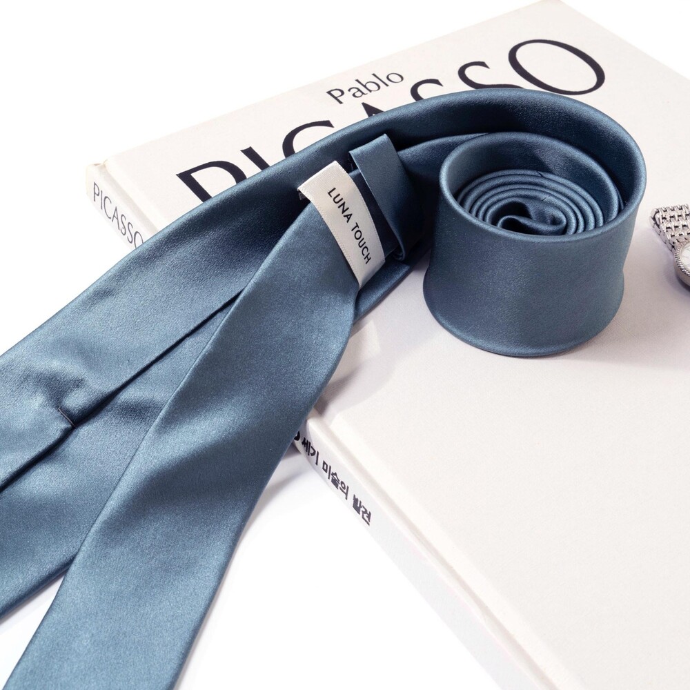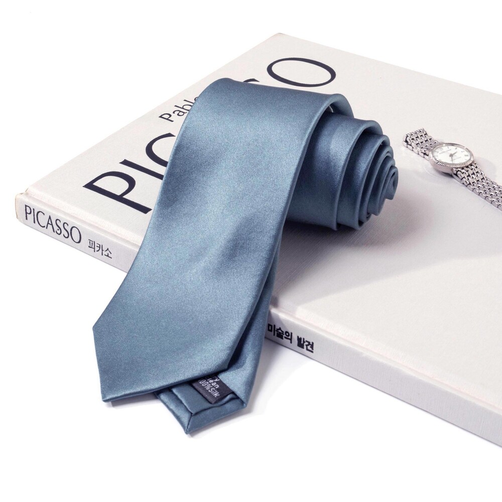 맑은 빛의 은은한 광택과 그레이쉬한 뮤티드 스카이 블루 컬러가 적절하게 조화를 이루는 제이드 블루 색상의 솔리드 프리미엄 타이입니다. 섬세하고 부드러운 실크 직조의 100% PURE SILK 소재로 제작되어 유연함을 지닌 텍스쳐로 자연스럽고 멋스러운 매듭을 연출 가능합니다. 사계절 시즌 모두 착용됩니다.