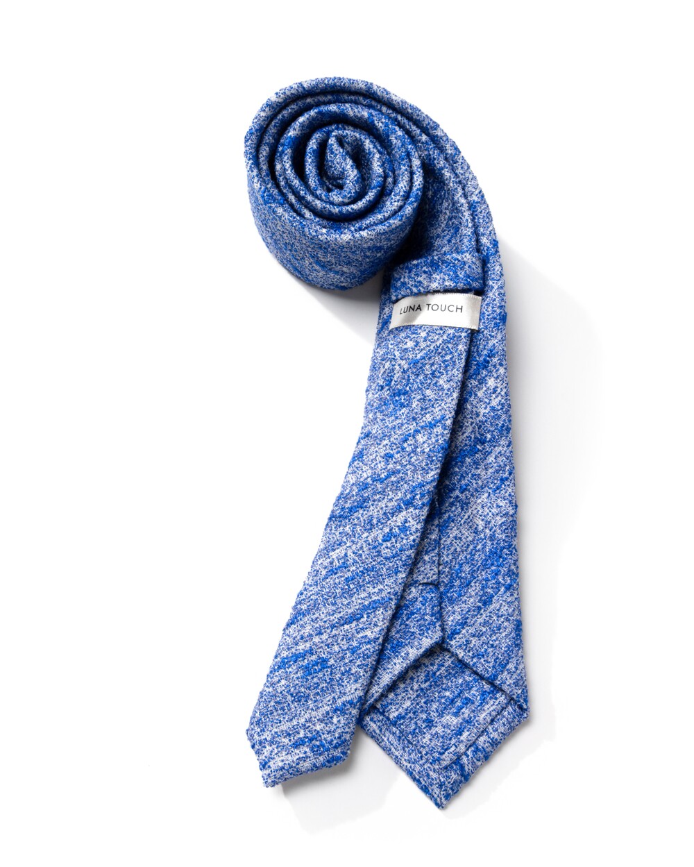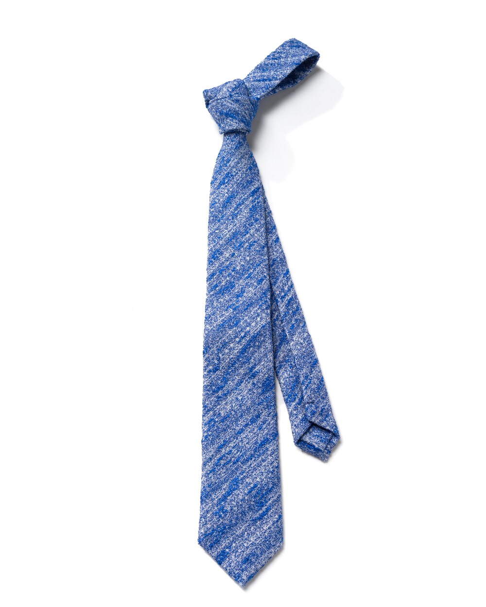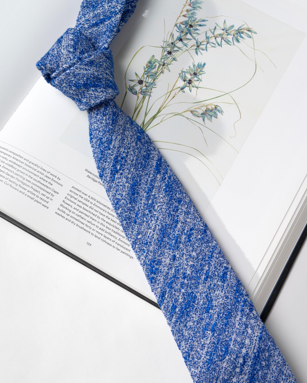 경쾌한 색감이 멋스러운 부클레 니티드 타이 입니다. 블루와 화이트 컬러의 울과 린넨 원사가 촘촘하고 강한 고리 형태의 직조로 짜여져 도톰하고 입체감 있는 질감을 선사합니다. 쉽게 찾아볼 수 없는 특별한 매력을 지닌 타이입니다.