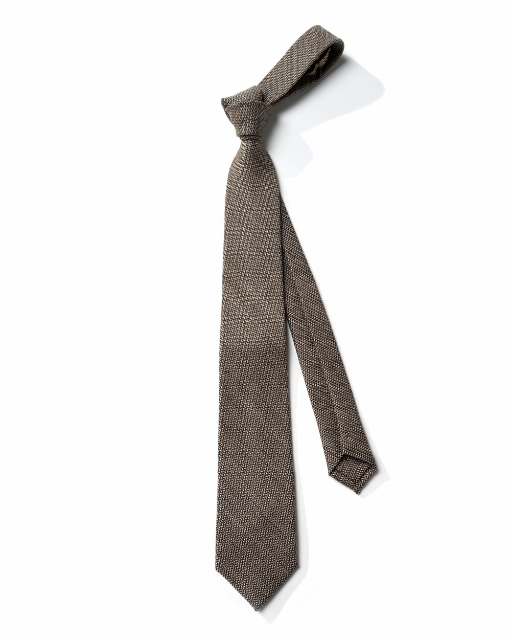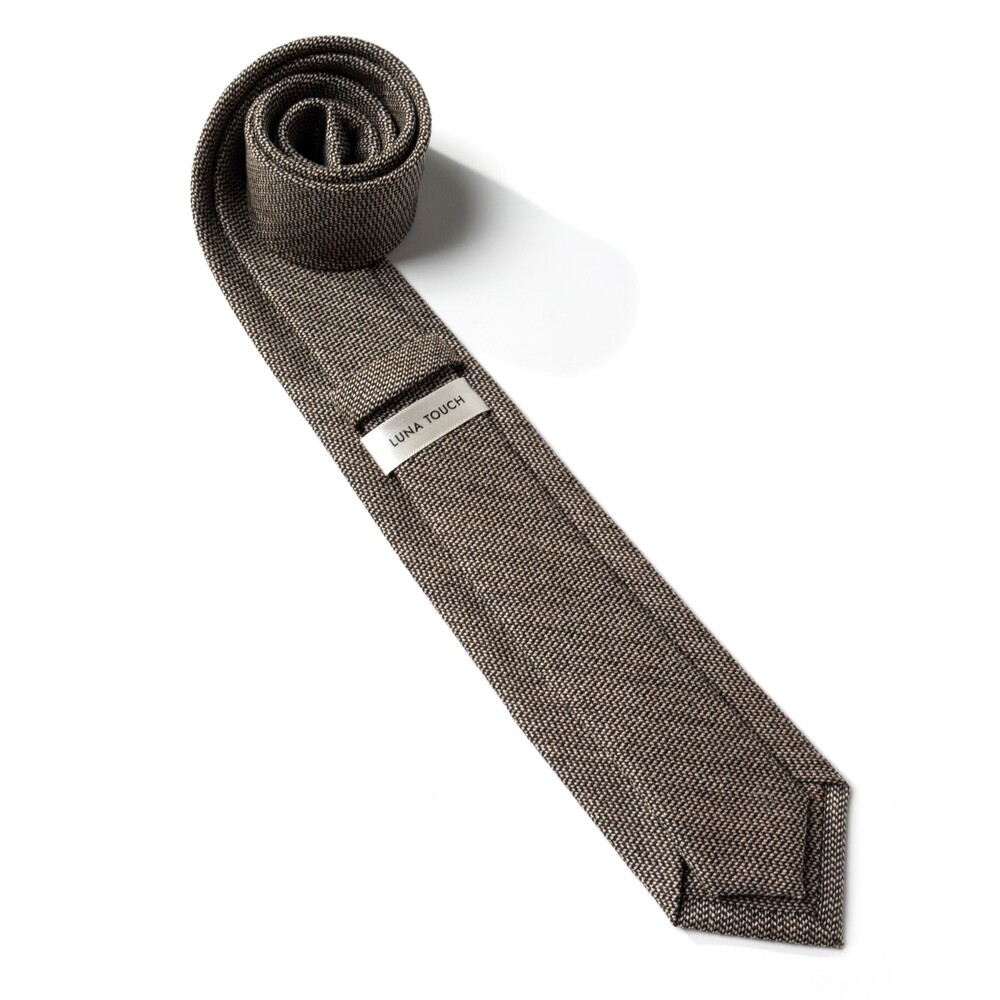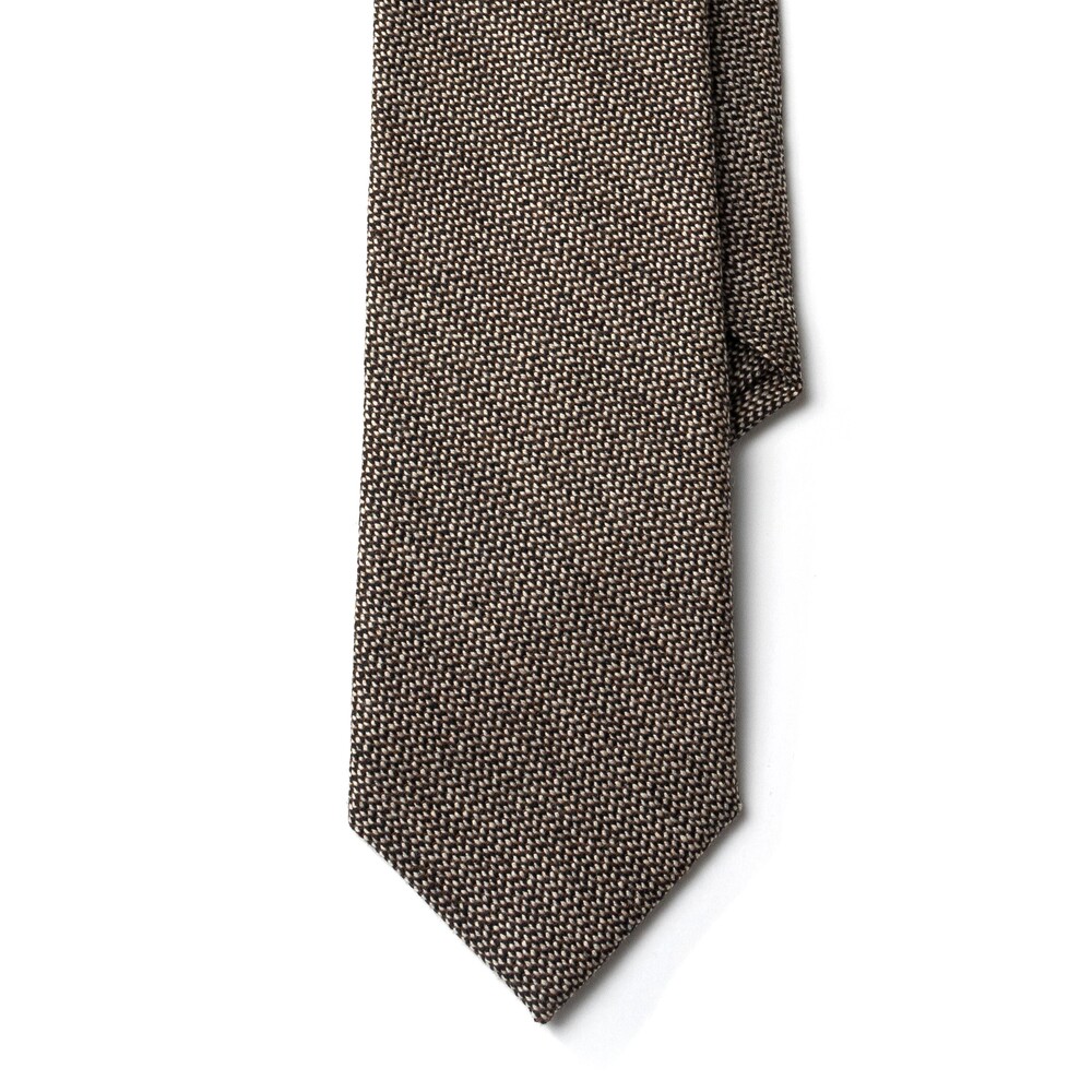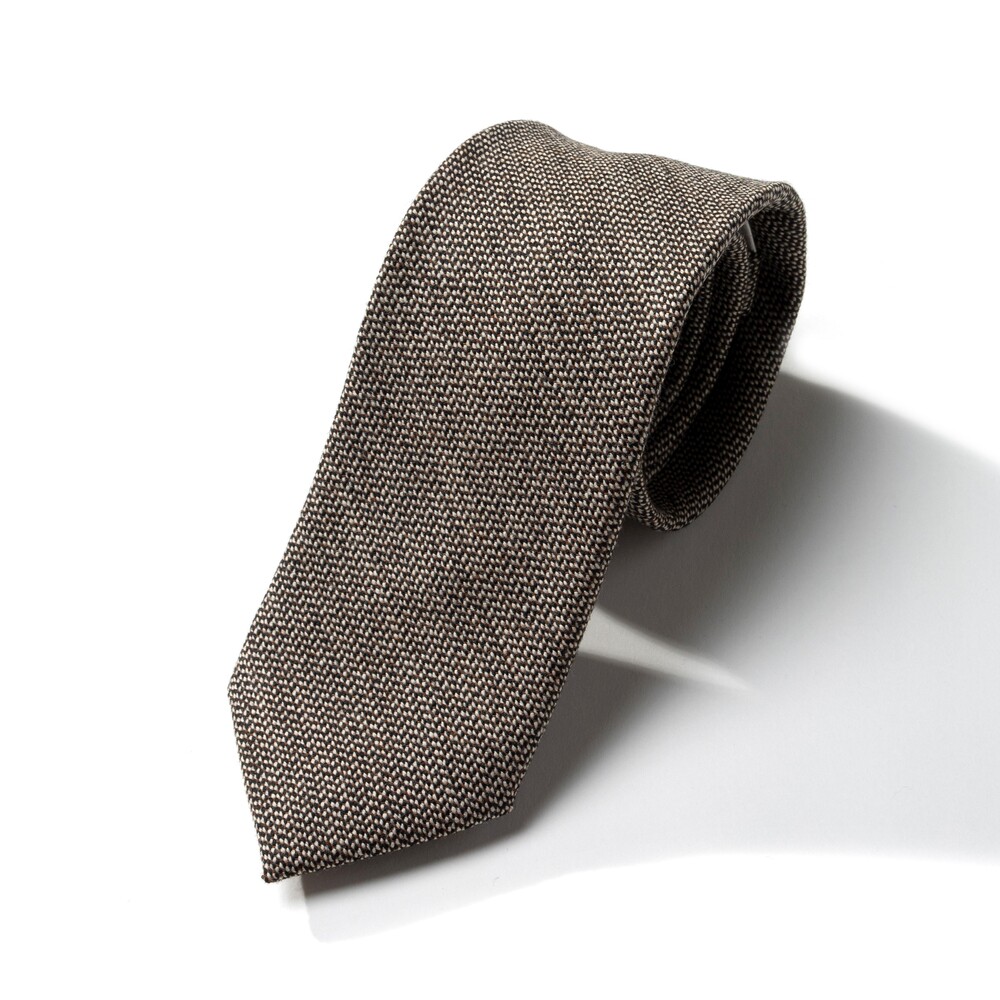 차분하고 따뜻한 질감의 이탈리아 캐시미어 울 블렌드 소재의 타이입니다. 매력적인 색감의 오트밀 브라운 컬러와 블랙 원사가 직조되어 클래식한 분위기가 연출됩니다. 포멀한 블레이저를 포함하여 캐주얼한 무드의 니트와 매치하여도 좋은 디자인으로 다양한 티피오에 착용이 가능합니다.