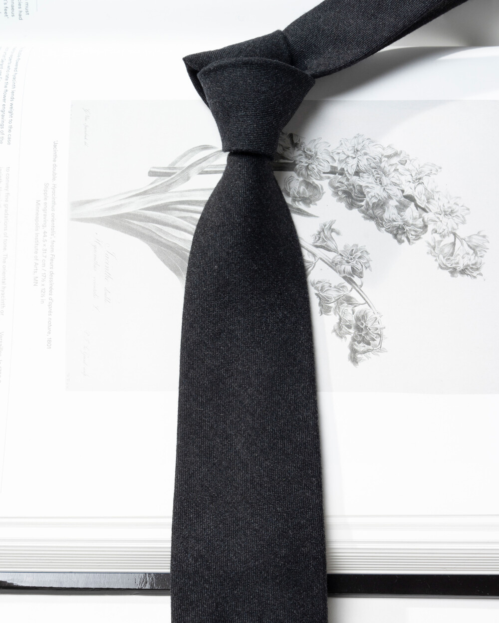 밀도 높은 견고한 제직으로 이루어진 솔리드 블랙 타이입니다. 이탈리안 캐시미어 울 블렌드 소재로 블랙 베이스에 미세한 화이티드 원사가 헤어리한 질감으로 직조되어 더욱 자연스러운 텍스쳐를 선사합니다. 비즈니스, 데이 타이, 특별한 날 등 포시즌 다양한 티피오와 함께하기 좋은 클래식한 디자인 입니다.