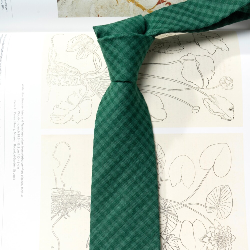 자연스러운 질감 처리로 다양한 티피오에 적용 가능한 깅엄체크 타이입니다. 클래식한 두 가지 톤의 그린 체크 패턴이 60수 코튼으로 평직되었습니다. 가뿐한 중량감으로 편안한 착용감을 선사하며, 셔츠와 단독으로 매치하여도 멋스럽습니다. 사계절 데이 타이로 좋은 타이입니다.