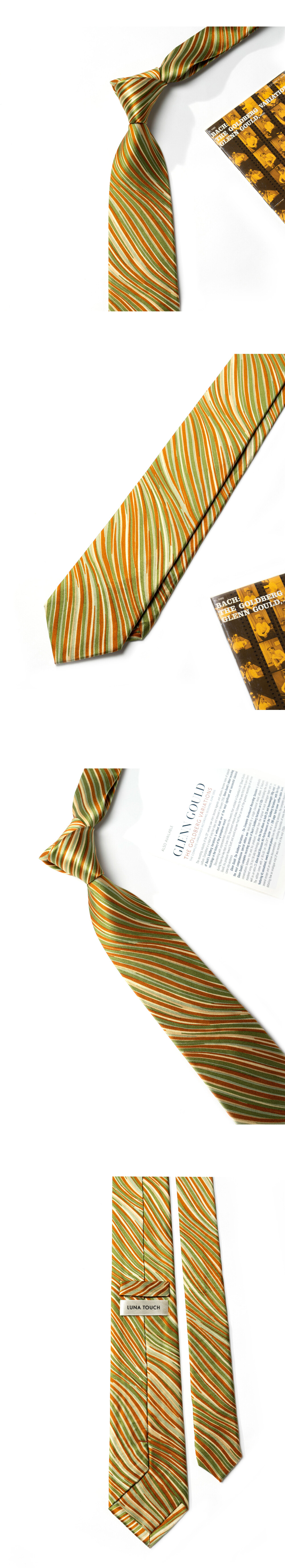 따뜻한 그린, 골드, 탠저린 빛이 감도는 프리미엄 실크 소재의 타이입니다. 흐르듯 부드럽고 유연한 텍스쳐로 내추럴한 선이 아름다우며 적당한 광택감이 멋을 더해줍니다. 사계절 모두 범용성 높게 착용되며, 자연스러운 율동감의 스트라이프 패턴으로 클래식한 멋을 지녔습니다.