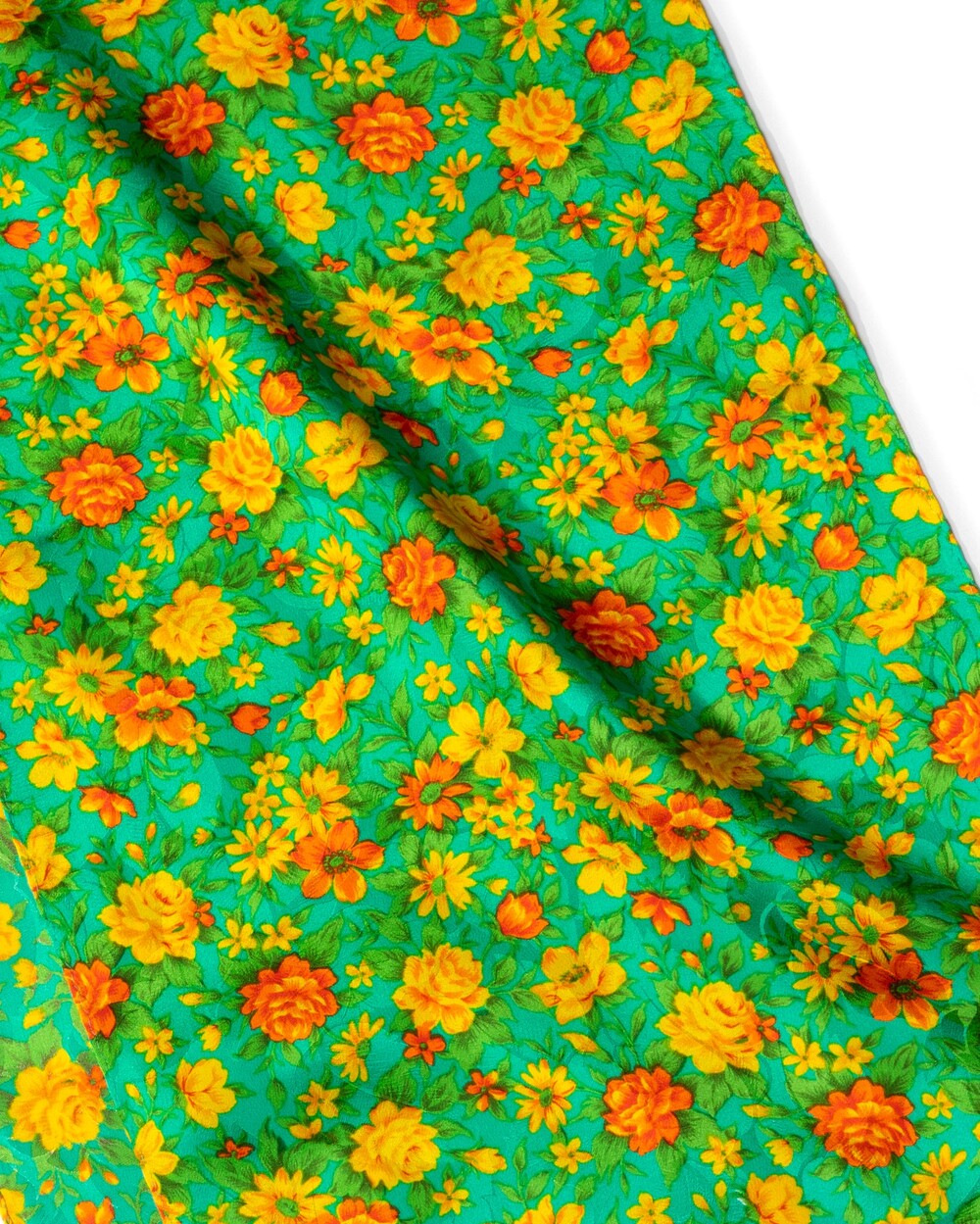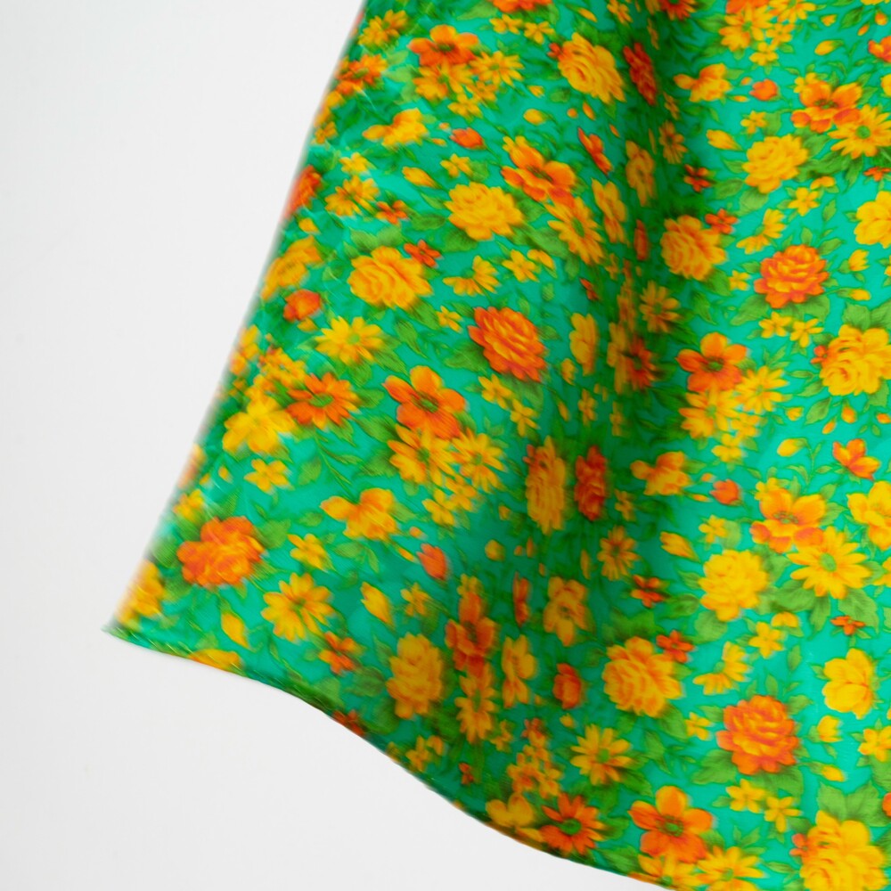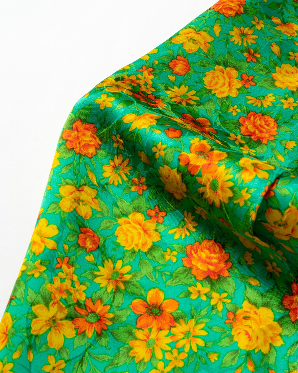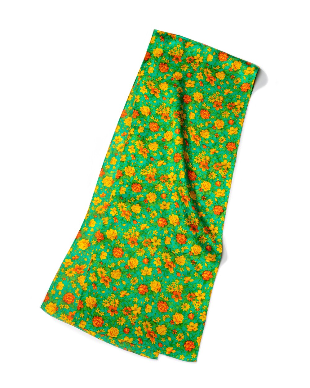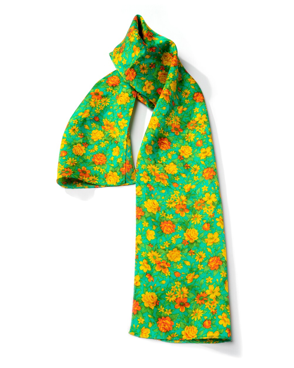 산뜻한 제이드 그린 컬러 베이스의 실크 롱 스카프입니다. 100% SILK 소재로 매끄럽고 유연한 터칭감이며 외부의 스크래치에 강한 직조로 제작됩니다. 화사한 색감 구성의 꽃송이 패턴이 사랑스러운 분위기를 선사합니다.