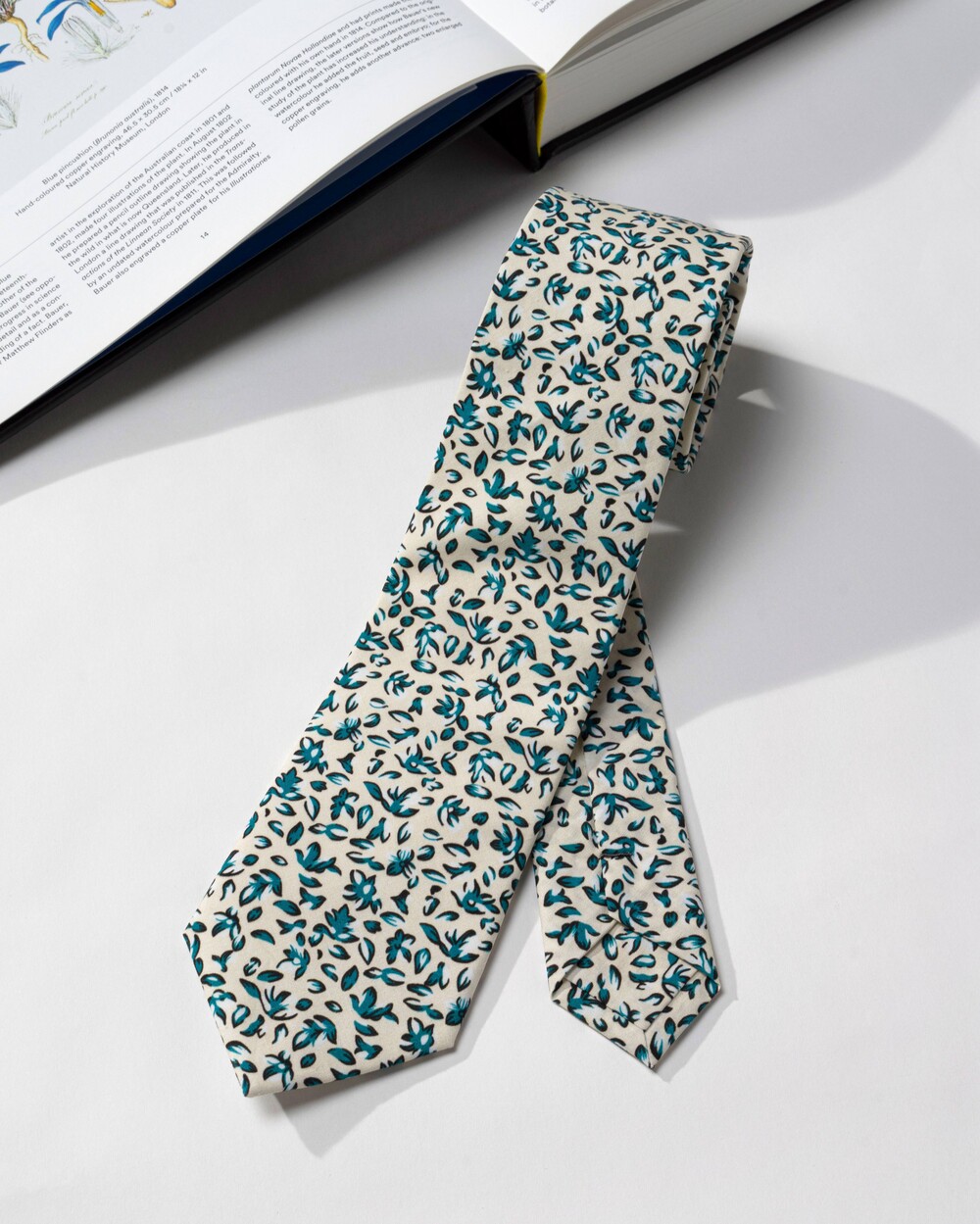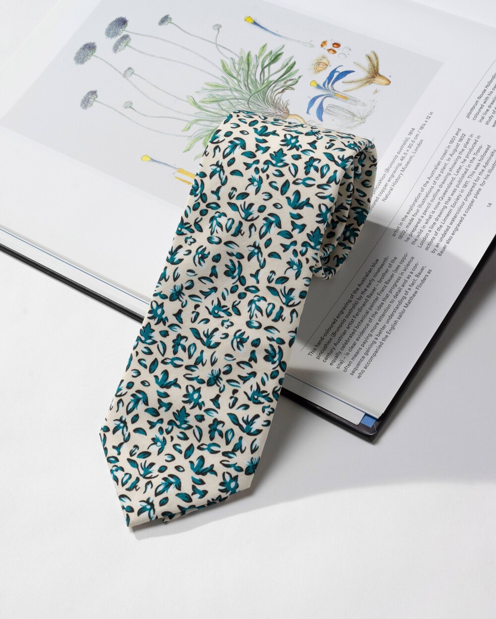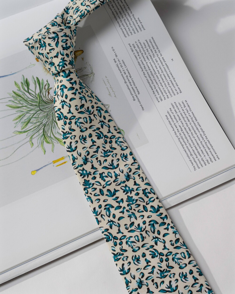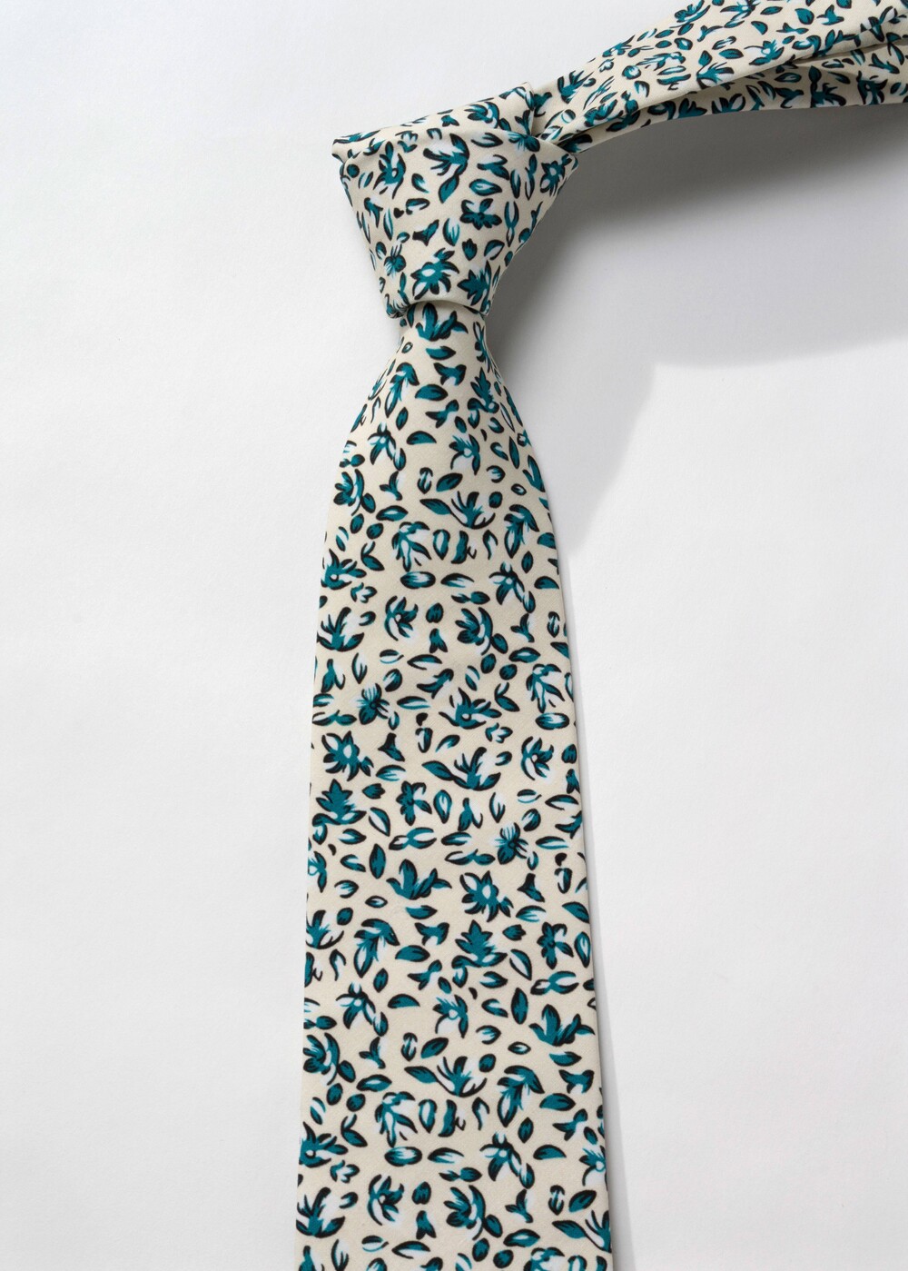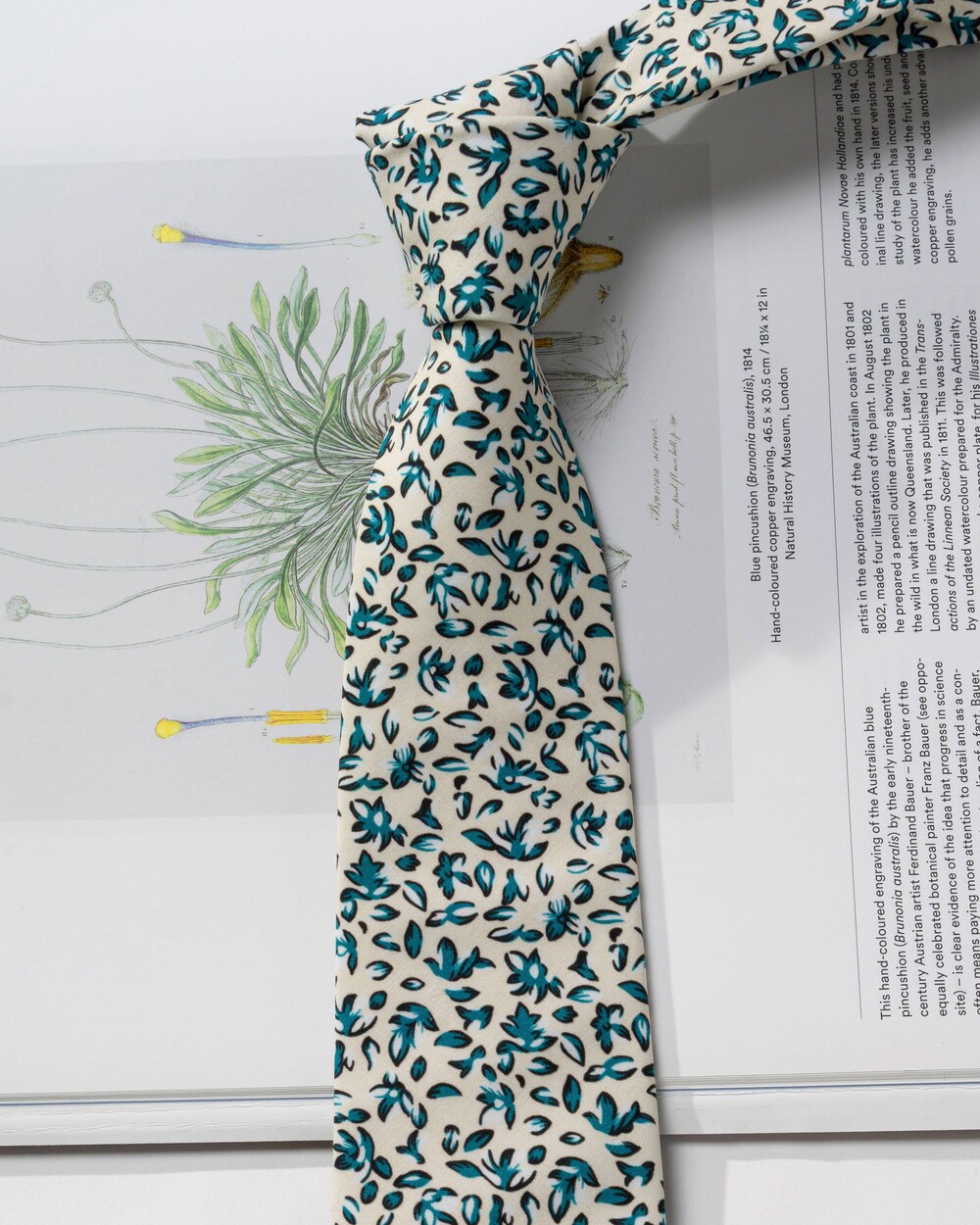 아이보리 베이스에 청록의 그리너리 리프 패턴 조합의 코튼 타이입니다. 사계절 모두 착용 가능한 라이트한 중량으로 편안한 착용감이며, 부드러운 텍스쳐의 탄탄한 40수 코튼 소재로 제작됩니다. 클래식한 감성을 지닌 타이로 룩의 포인트가 되어줍니다.