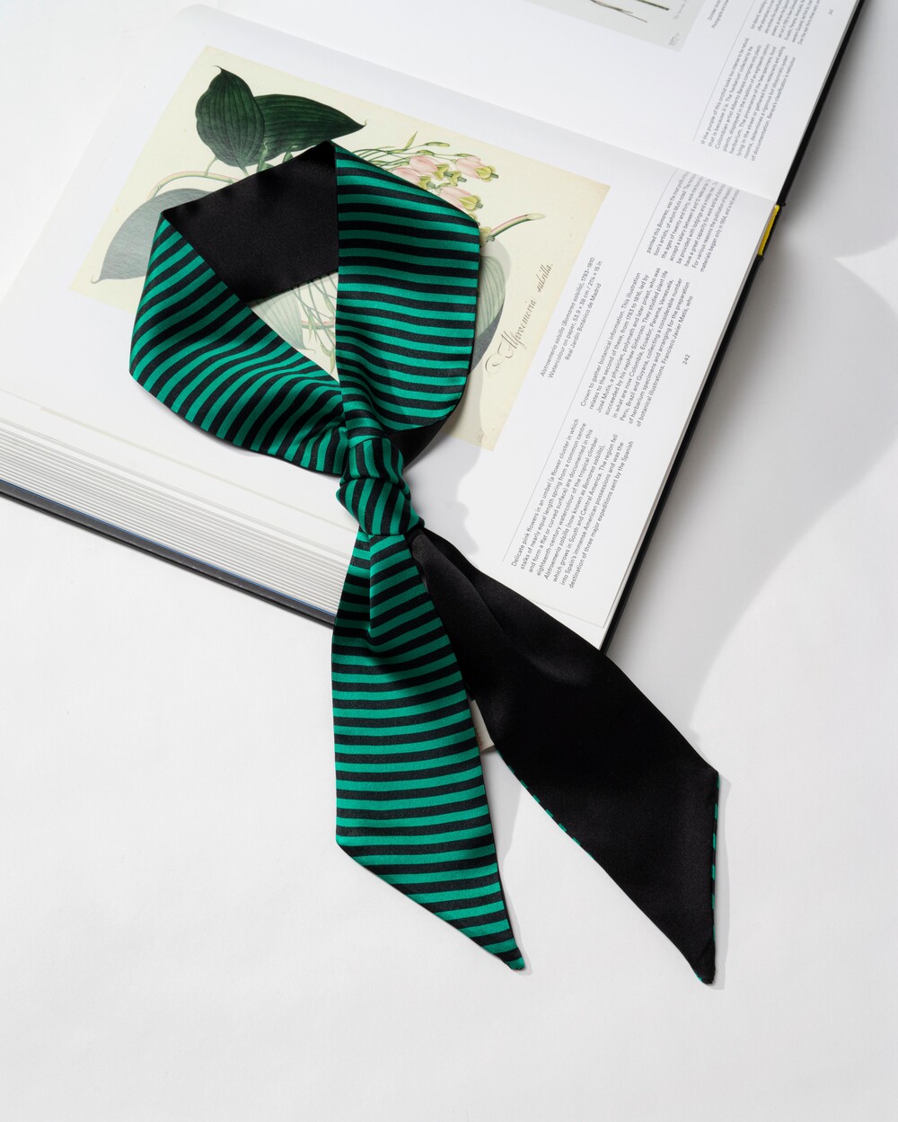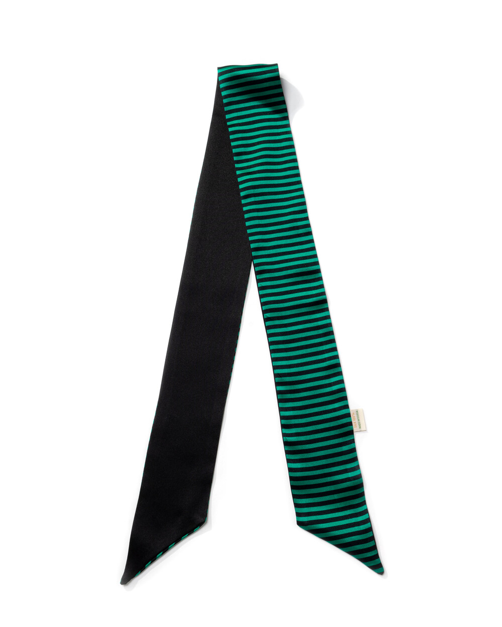 블랙 앤 그린 조합의 런던 스트라이프 패턴의 실크 트윌리 스카프 입니다. 부드러운 텍스쳐와 은은한 광택감을 지닌 100% SILK 소재로 유연한 실루엣이 돋보입니다. 같은 간격으로 형성된 런던 스트라이프 패턴은 어떤 착장에도 미니멀한 실루엣의 깔끔한 룩을 완성시켜 줍니다.