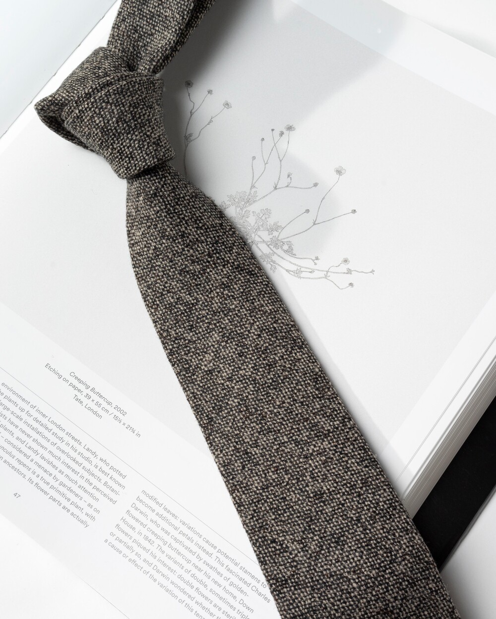 블랙과 오트밀의 밀도 높은 직조가 돋보이는 모던한 분위기의 이탈리안 울 타이입니다. 촘촘한 제직감의 니트 텍스쳐로 짜여진 이탈리안 울(Italy Wool) 100% 소재로 깔끔한 실루엣이 연출됩니다. 수트에도, 코지한 감성의 캐주얼 룩에도 단정하고도 포멀한 멋을 보여줄 수 있는 범용성 높은 디자인 입니다.
