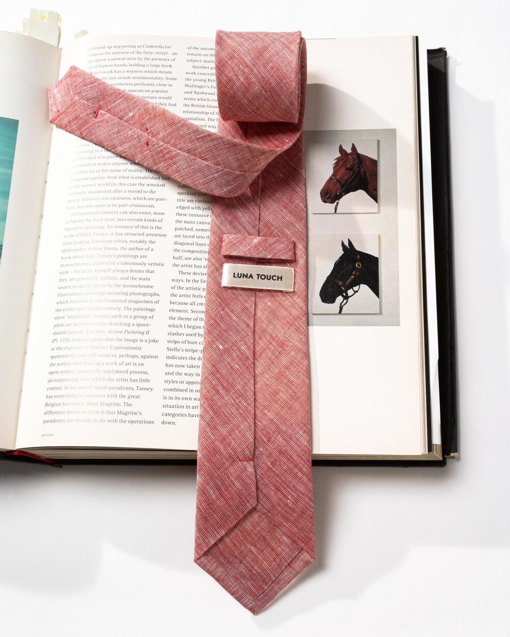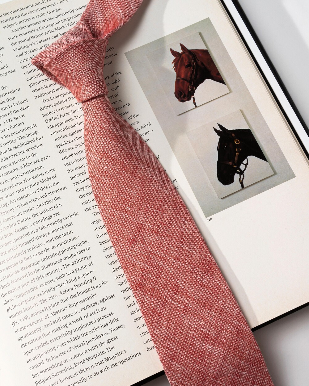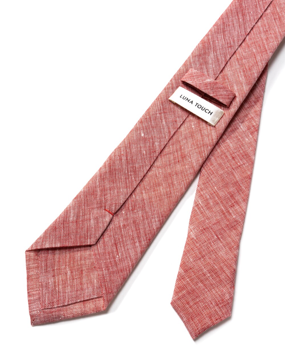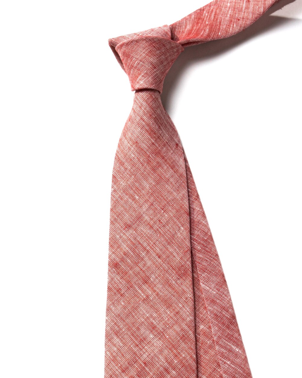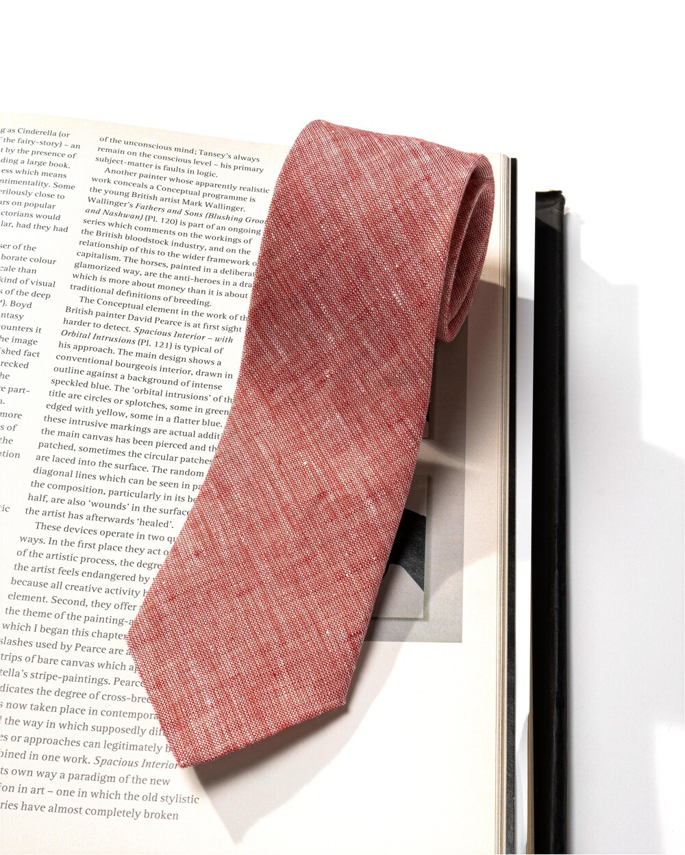 짙은 단풍빛의 스칼렛 레드와 화이트 컬러 린넨 원사가 밀도 높은 직조로 짜여진 이탈리안 린넨 타이입니다. 천연 린넨 섬유로 제작되며 러프하고 자유로운 형식을 가진 린넨 원사의 내추럴한 질감이 멋스럽습니다. 사계절 시즌 다채로운 룩에 적용 가능한 솔리드 타입으로 포멀한 룩과 캐주얼한 룩 모두에 높은 범용성을 가진 타이입니다.