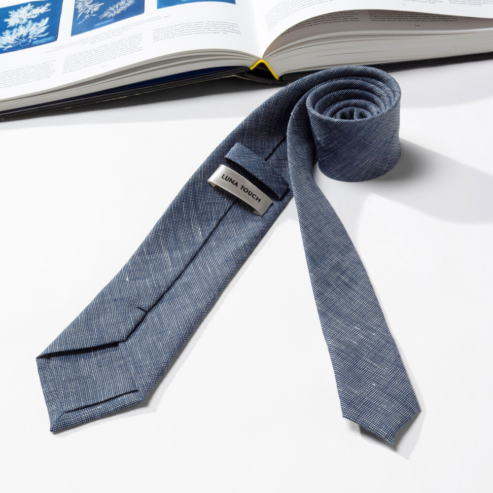 SOLID ASH BLUE ITALY LINEN TIE