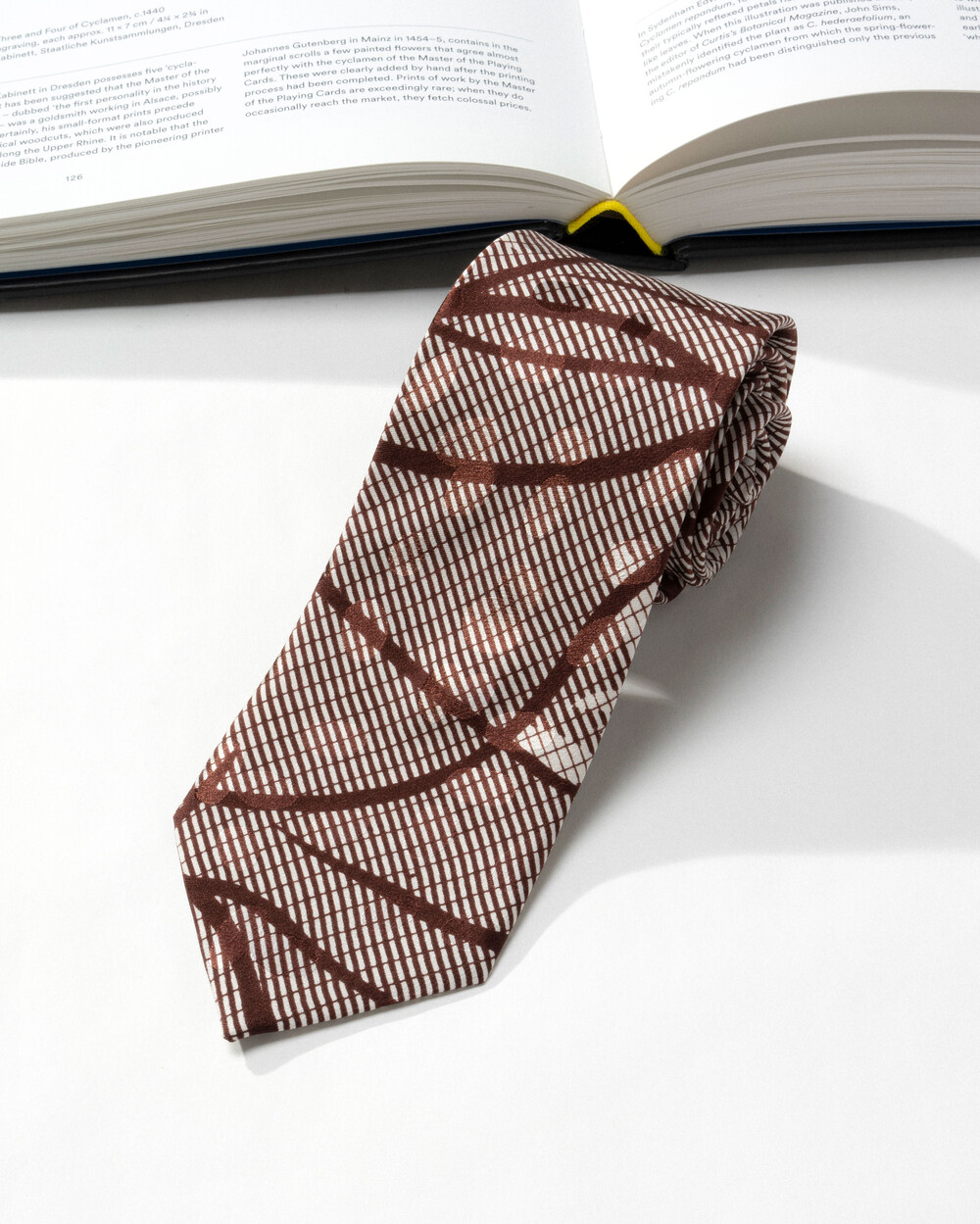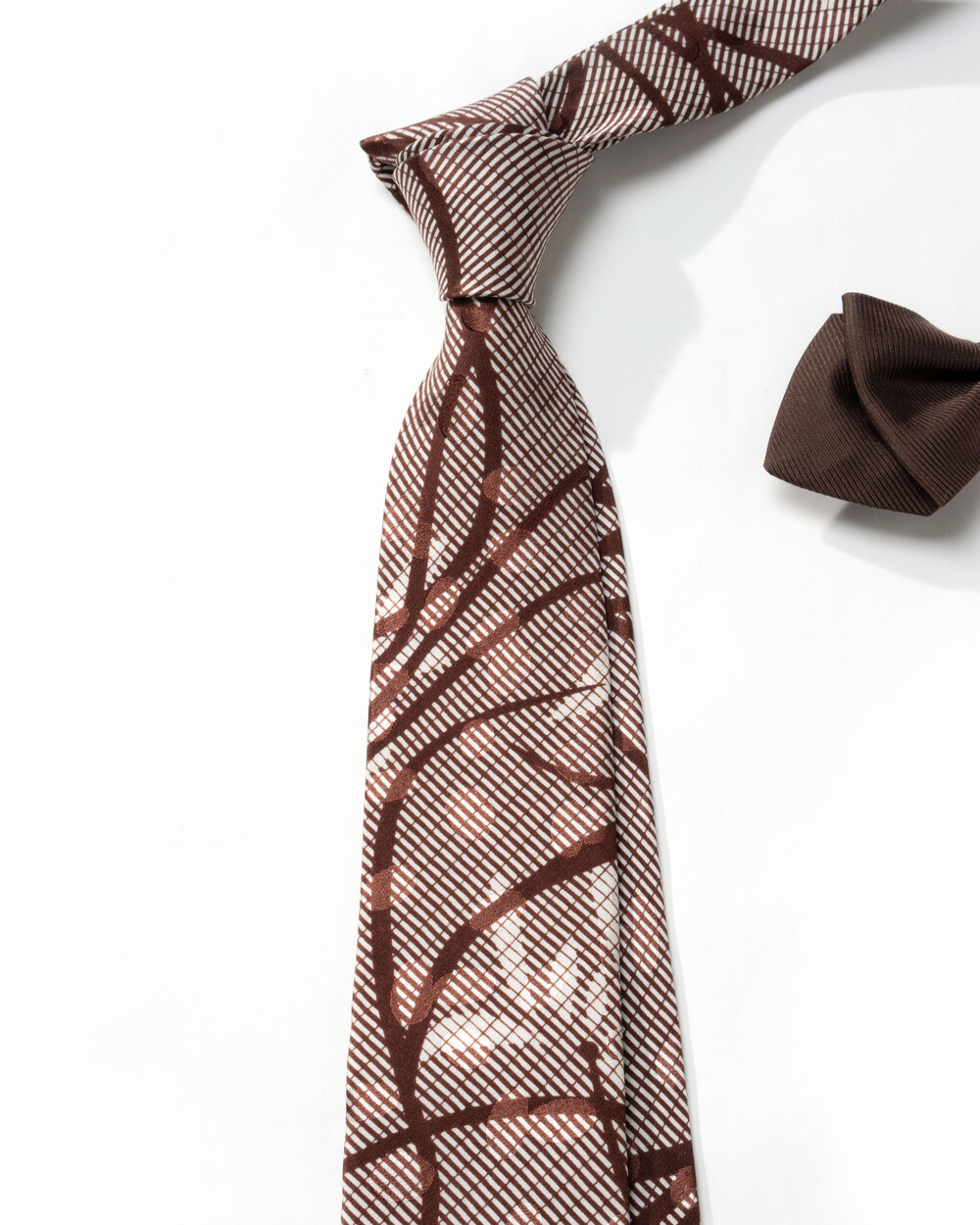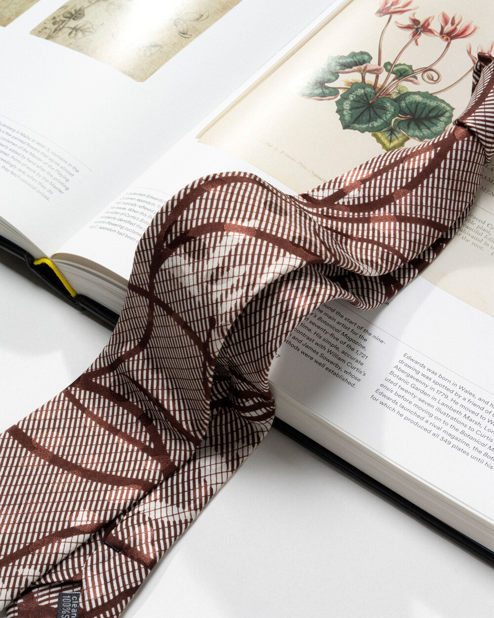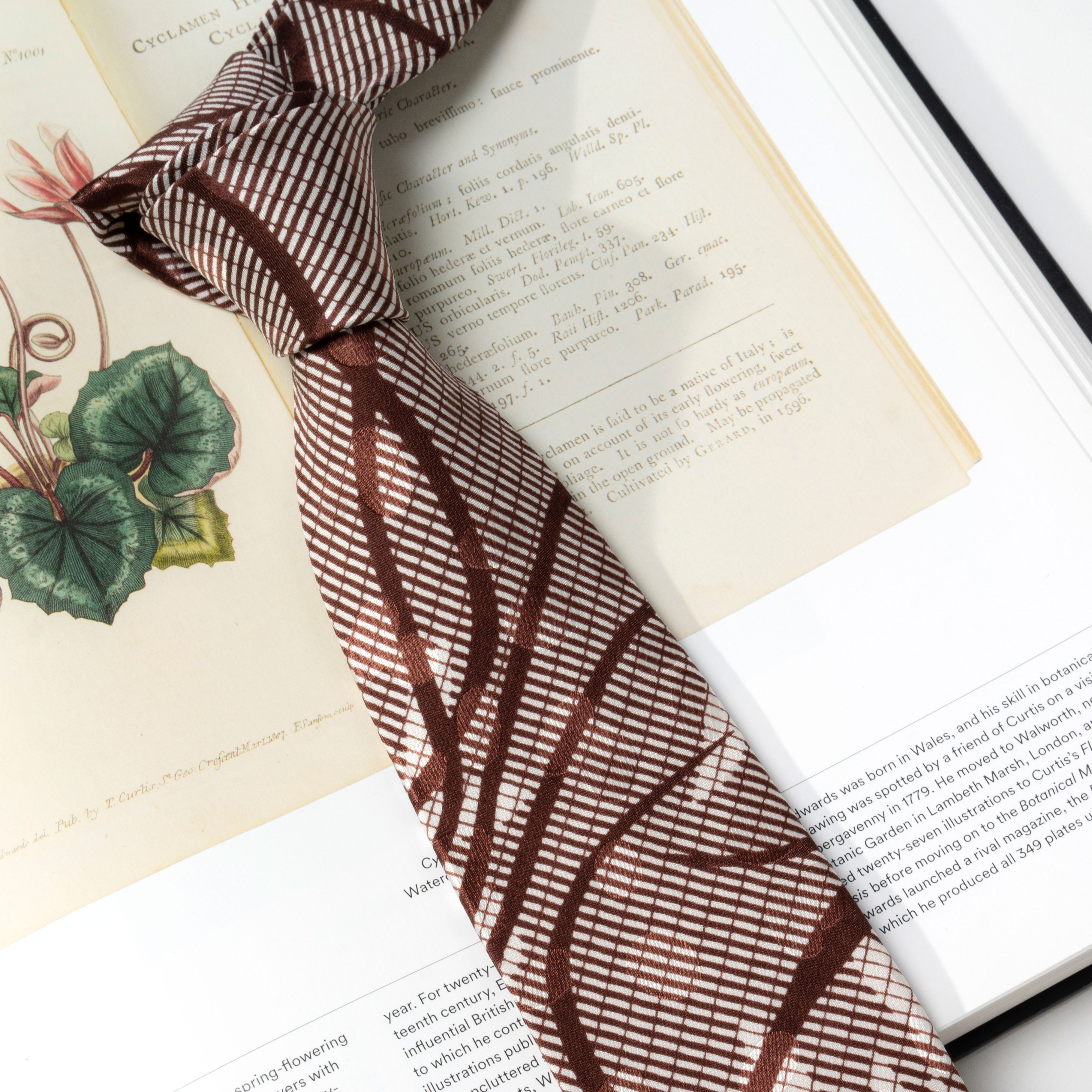자연스러운 우디 패턴의 움직임이 멋스러운 실크 타이입니다. 클래식한 브라운 컬러를 베이스로 곡선형의 나무 패턴과 타원형의 도트 패턴이 조화를 이루고 있습니다. 단조로운 룩에 포멀한 멋을 더해줄 수 있는 클래식한 무드의 타이입니다. 수트 뿐만 아니라 캐주얼룩, 레더 자켓 등 다양한 아웃핏과 착용하여도 멋스럽습니다.